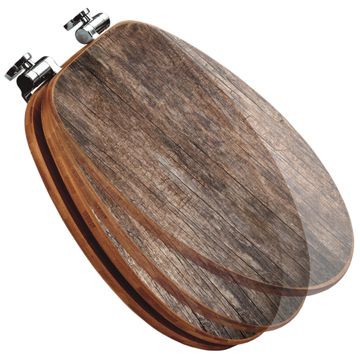 Mit dem banjado Toilettensitz in Bambus verbinden Sie Design und Funktionalität. Sie erhalten den WC-Sitz mit bewährter Holz Qualität und Universal Scharnieren. Das Motiv Motiv Altes Holz besteht aus einer schutzlaminierten Motivfolie, die durch das Schutzlaminat zusätzlich vor Kratzern schützt. Durch diesen Motivdruck wird der WC-Sitz zu einem Blickfang in Ihrem Bad.