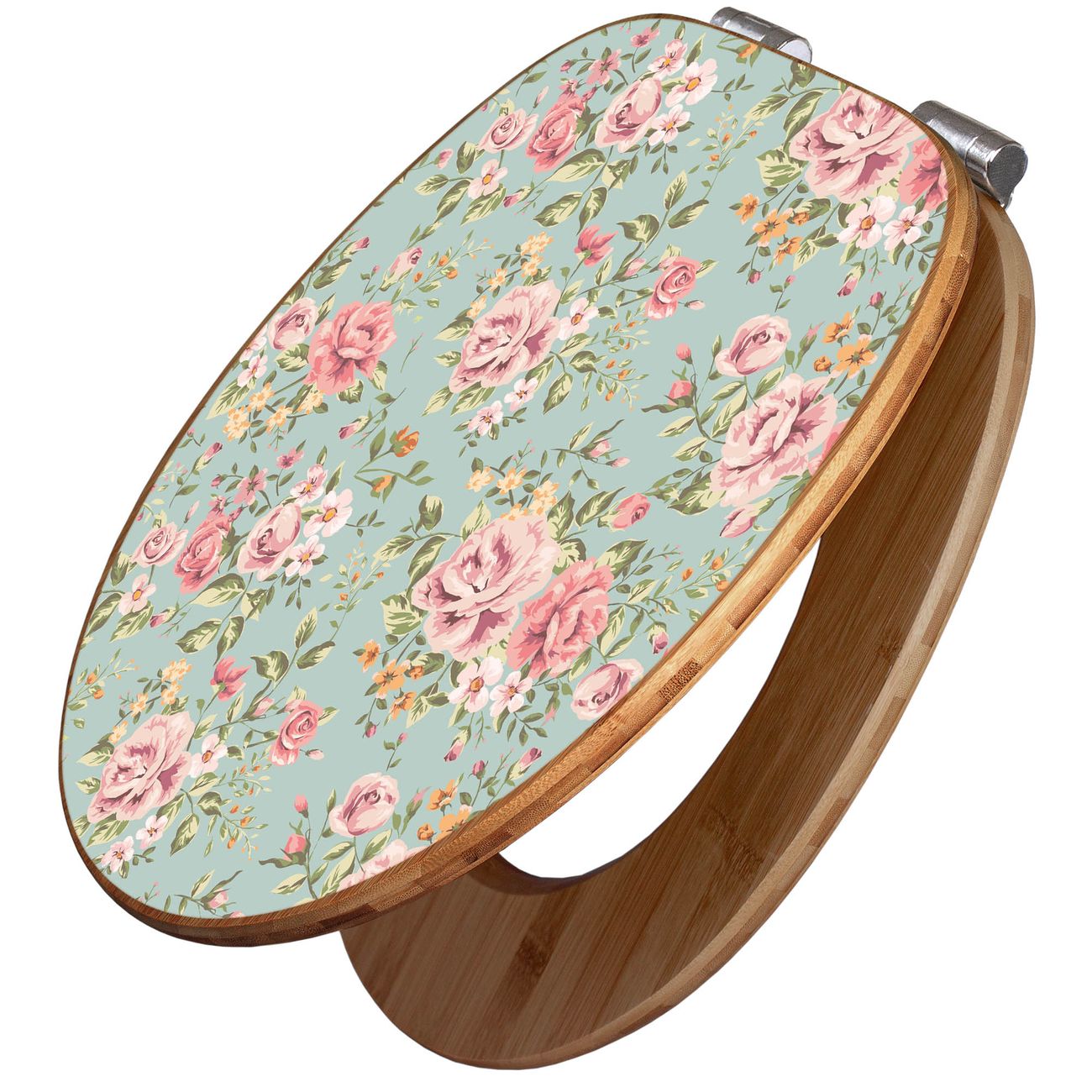 Design WC-Sitz Bambus Absenkautomatik Motiv Altrosa Blume