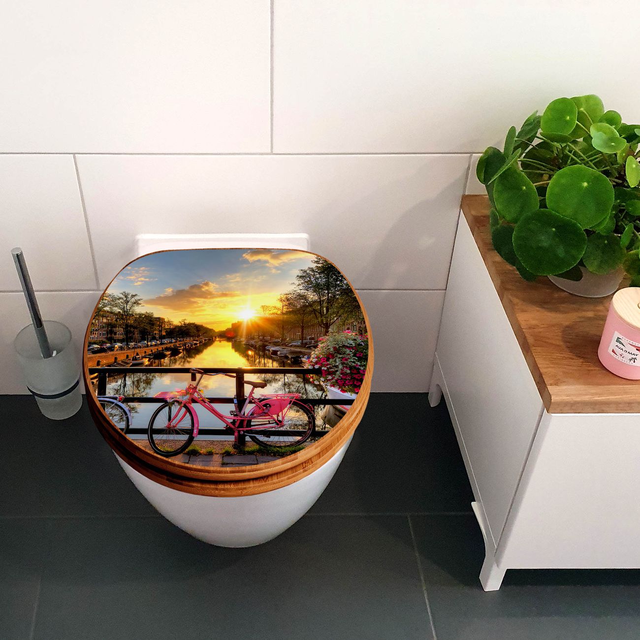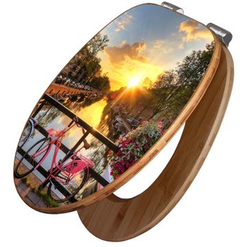 Design WC-Sitz Bambus Absenkautomatik Motiv Amsterdam Mit Rad