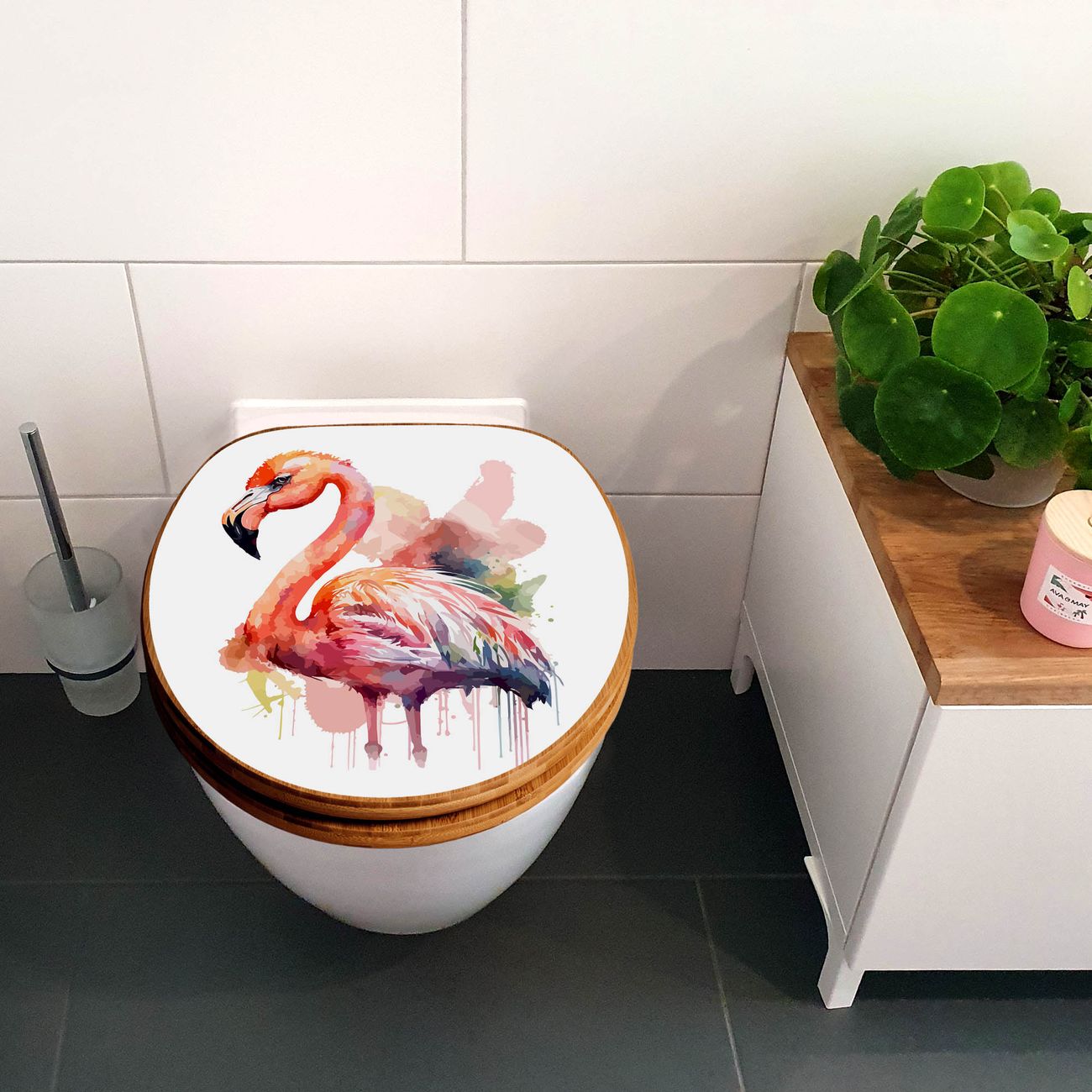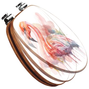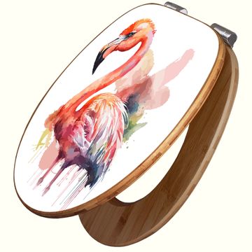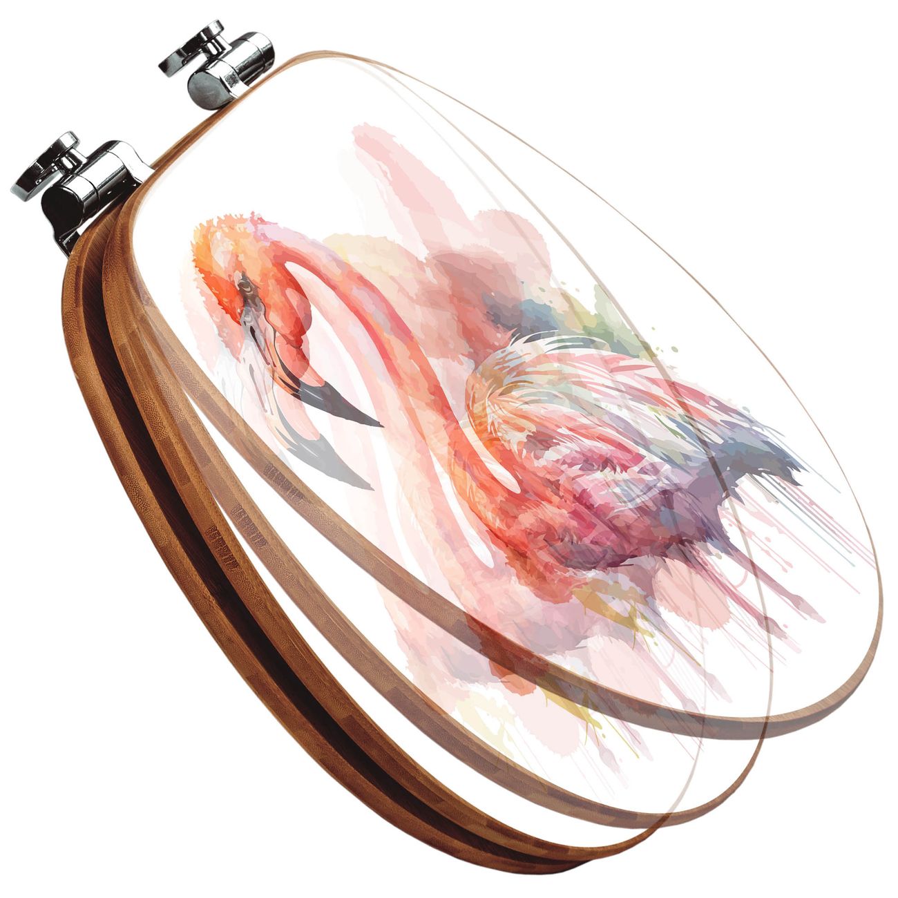 Design WC-Sitz Bambus Absenkautomatik Motiv Aquarell-Flamingo