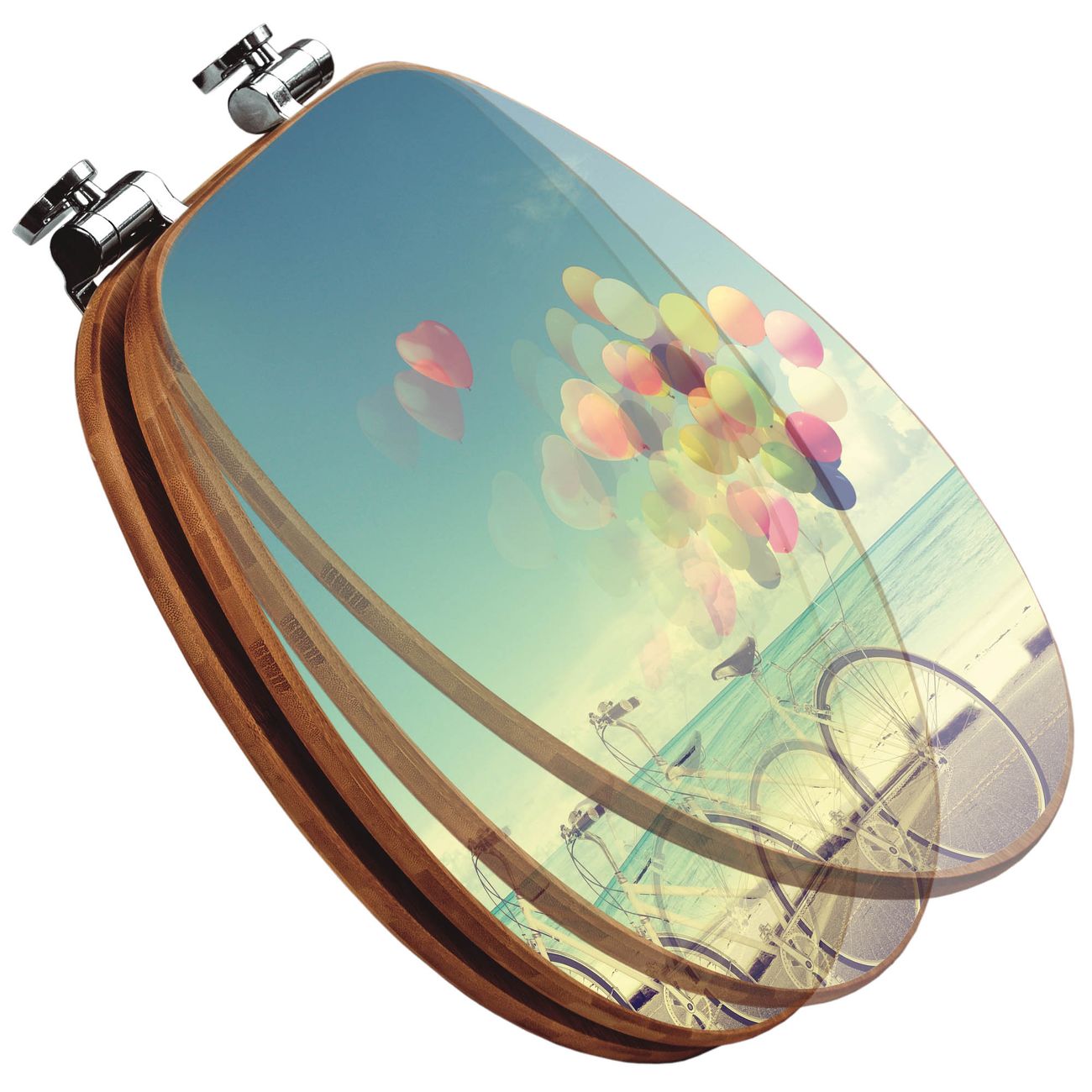 Mit dem banjado Toilettensitz in Bambus verbinden Sie Design und Funktionalität. Sie erhalten den WC-Sitz mit bewährter Holz Qualität und Universal Scharnieren. Das Motiv Motiv Auf Und Davon besteht aus einer schutzlaminierten Motivfolie, die durch das Schutzlaminat zusätzlich vor Kratzern schützt. Durch diesen Motivdruck wird der WC-Sitz zu einem Blickfang in Ihrem Bad.