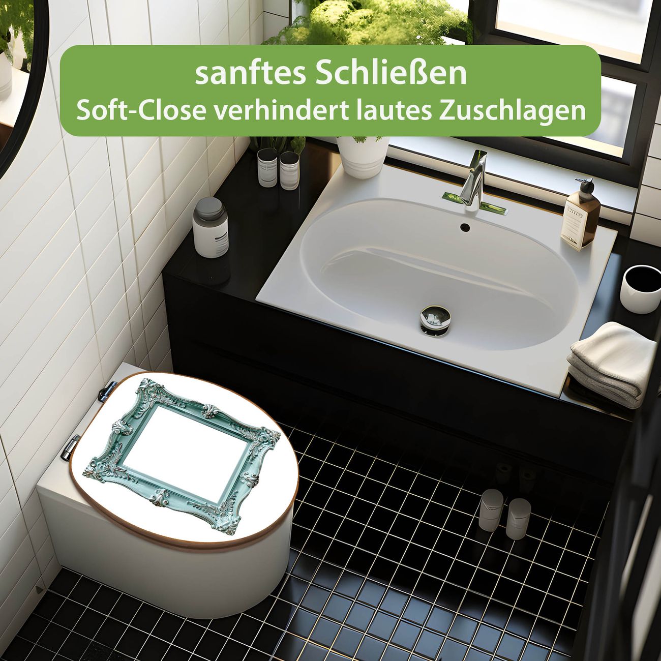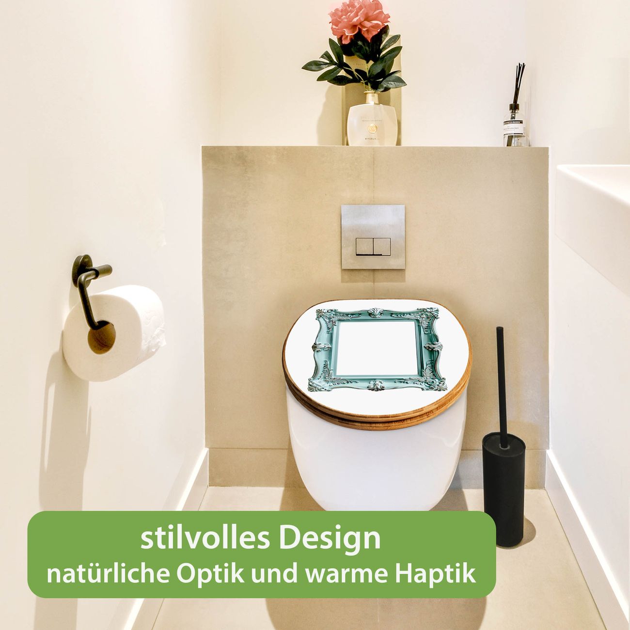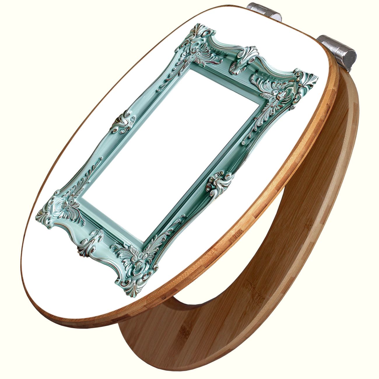 Design WC-Sitz Bambus Absenkautomatik Motiv Barockrahmen in Türkis