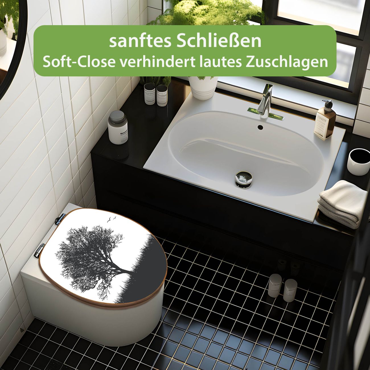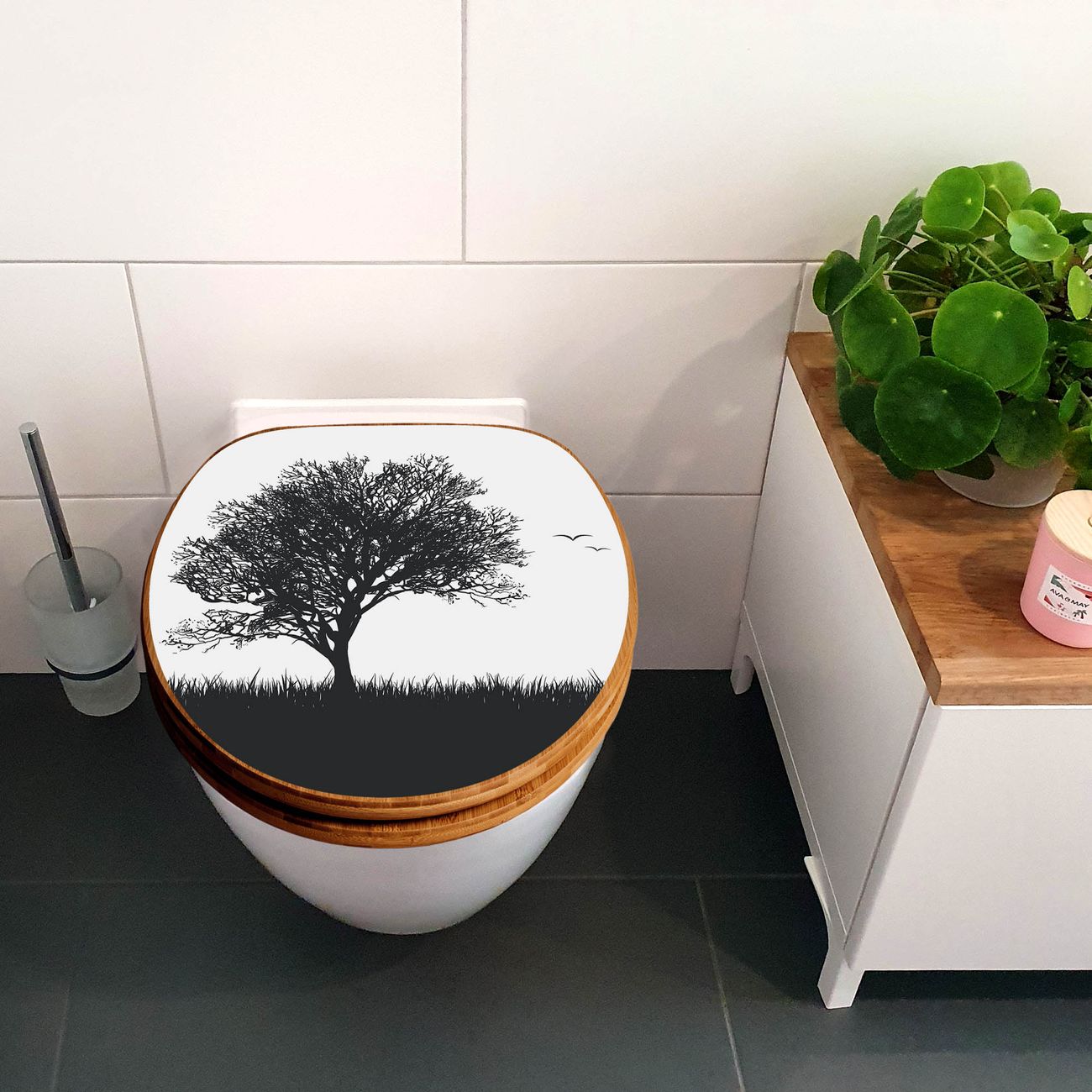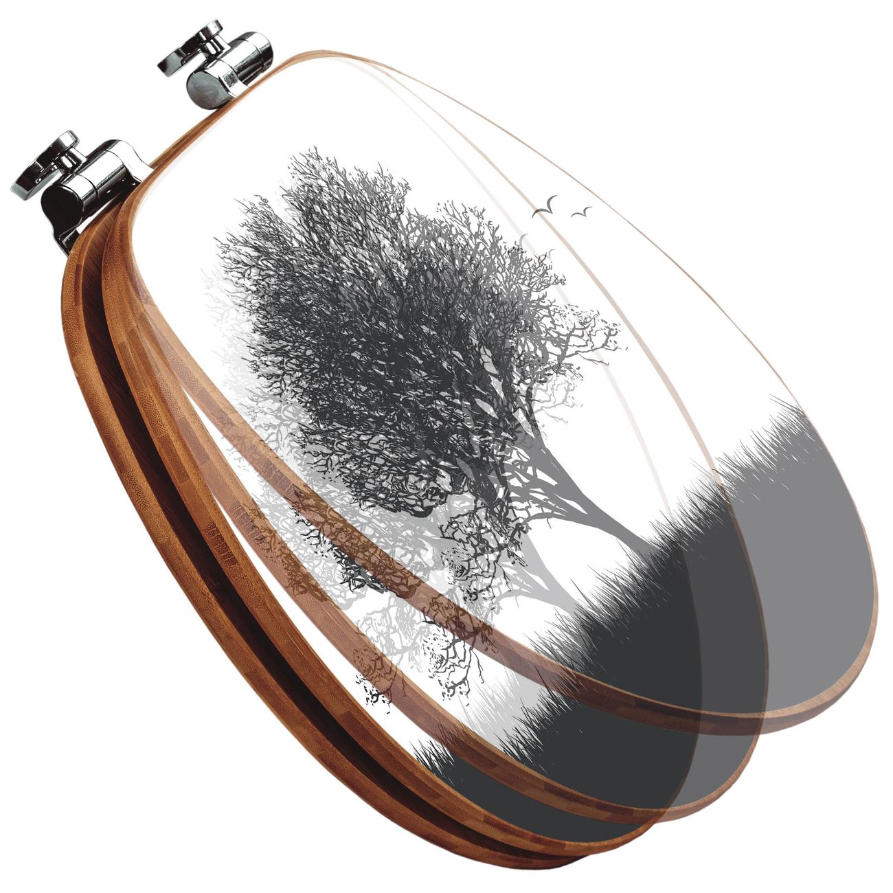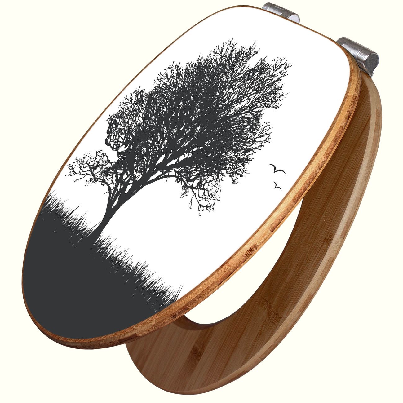 Design WC-Sitz Bambus Absenkautomatik Motiv Baum und Vögel Silhouette