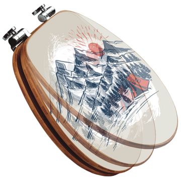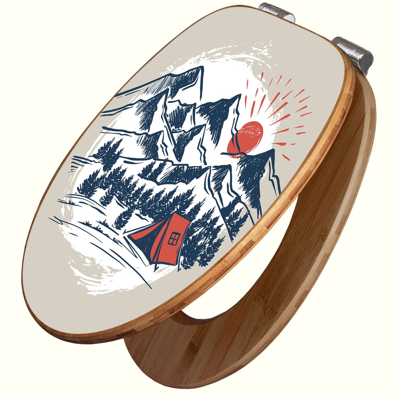Design WC-Sitz Bambus Absenkautomatik Motiv Bergcamping Abenteuer