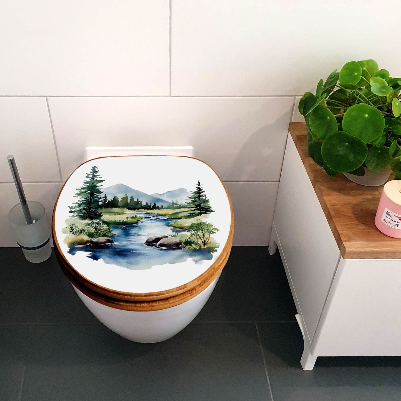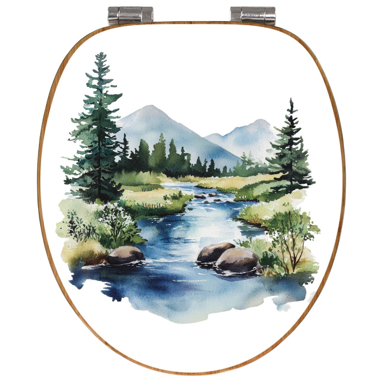 Design WC-Sitz Bambus Absenkautomatik Motiv Bergfluss in der Natur