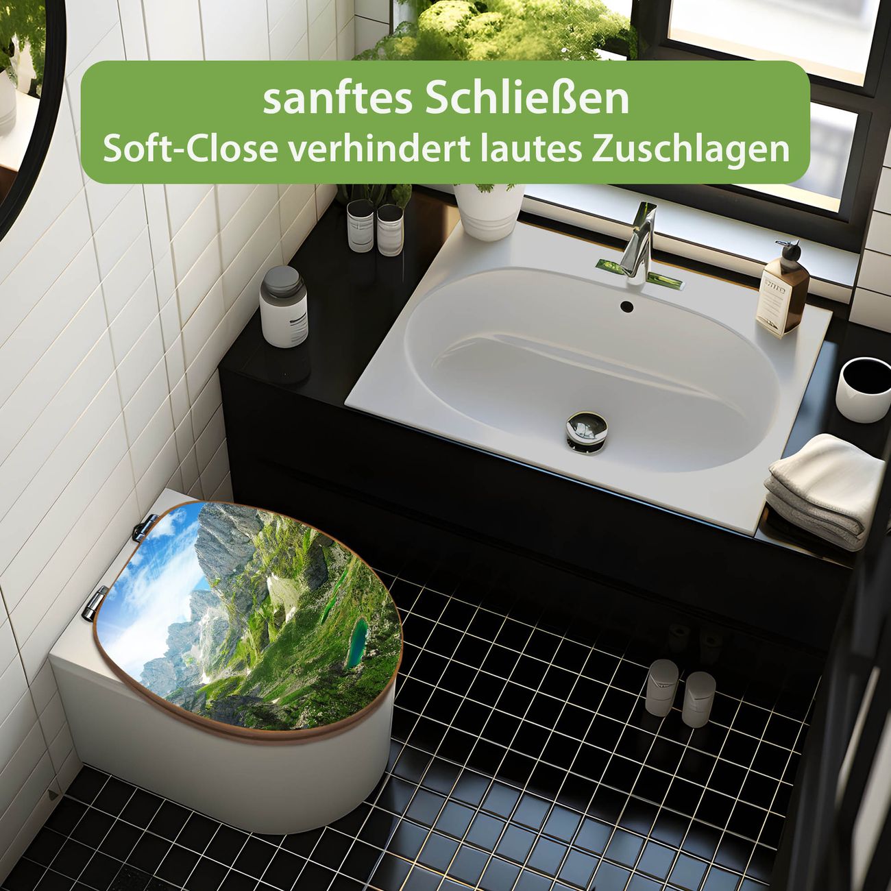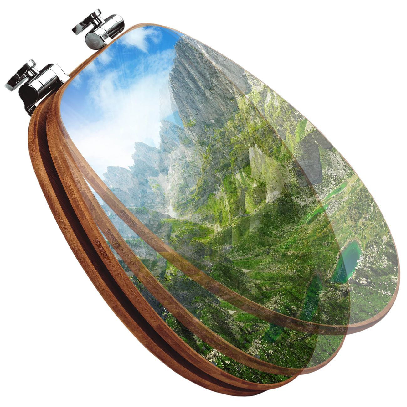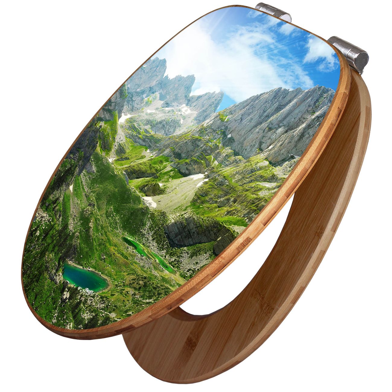 Design WC-Sitz Bambus Absenkautomatik Motiv Bergsee Alpen