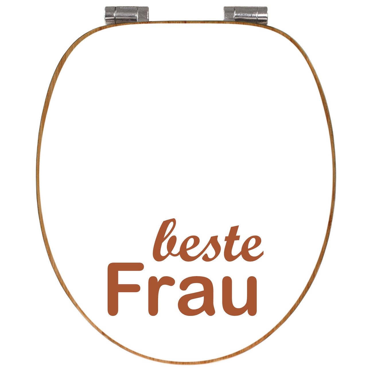 Mit dem banjado Toilettensitz in Bambus verbinden Sie Design und Funktionalität. Sie erhalten den WC-Sitz mit bewährter Holz Qualität und Universal Scharnieren. Das Motiv Motiv beste Frau 2 besteht aus einer schutzlaminierten Motivfolie, die durch das Schutzlaminat zusätzlich vor Kratzern schützt. Durch diesen Motivdruck wird der WC-Sitz zu einem Blickfang in Ihrem Bad.