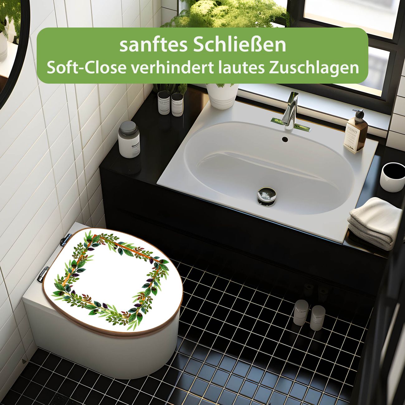 Design WC-Sitz Bambus Absenkautomatik Motiv Blätterrahmen 2