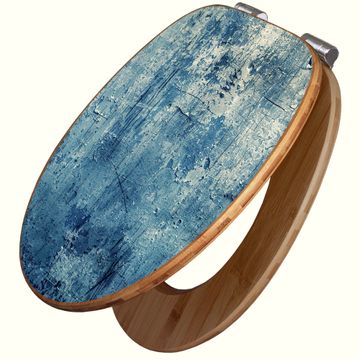 Design WC-Sitz Bambus Absenkautomatik Motiv Blaue Wandtextur