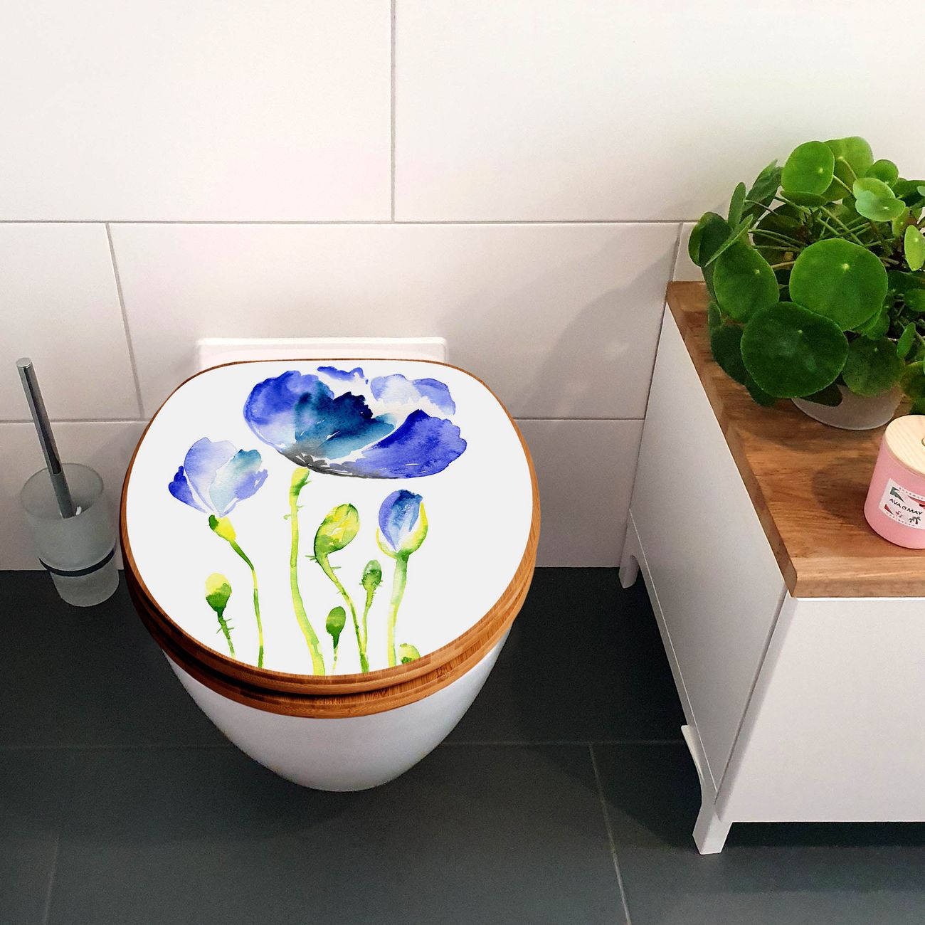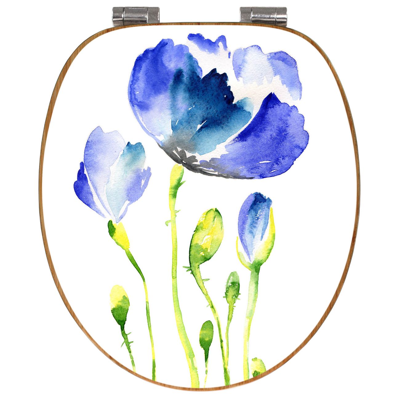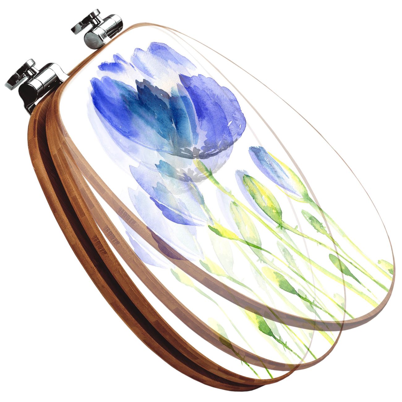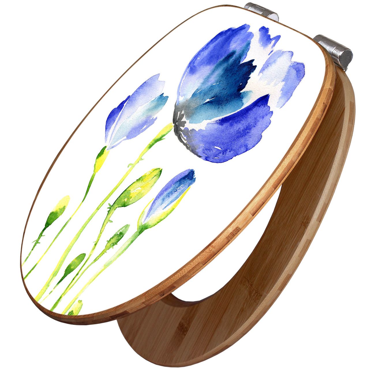 Design WC-Sitz Bambus Absenkautomatik Motiv Blauer Mohn