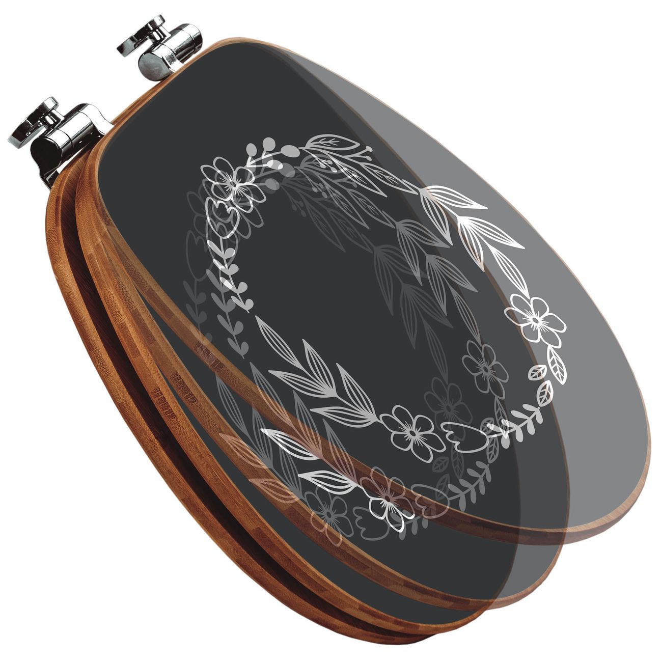Design WC-Sitz Bambus Absenkautomatik Motiv Blütenkranz