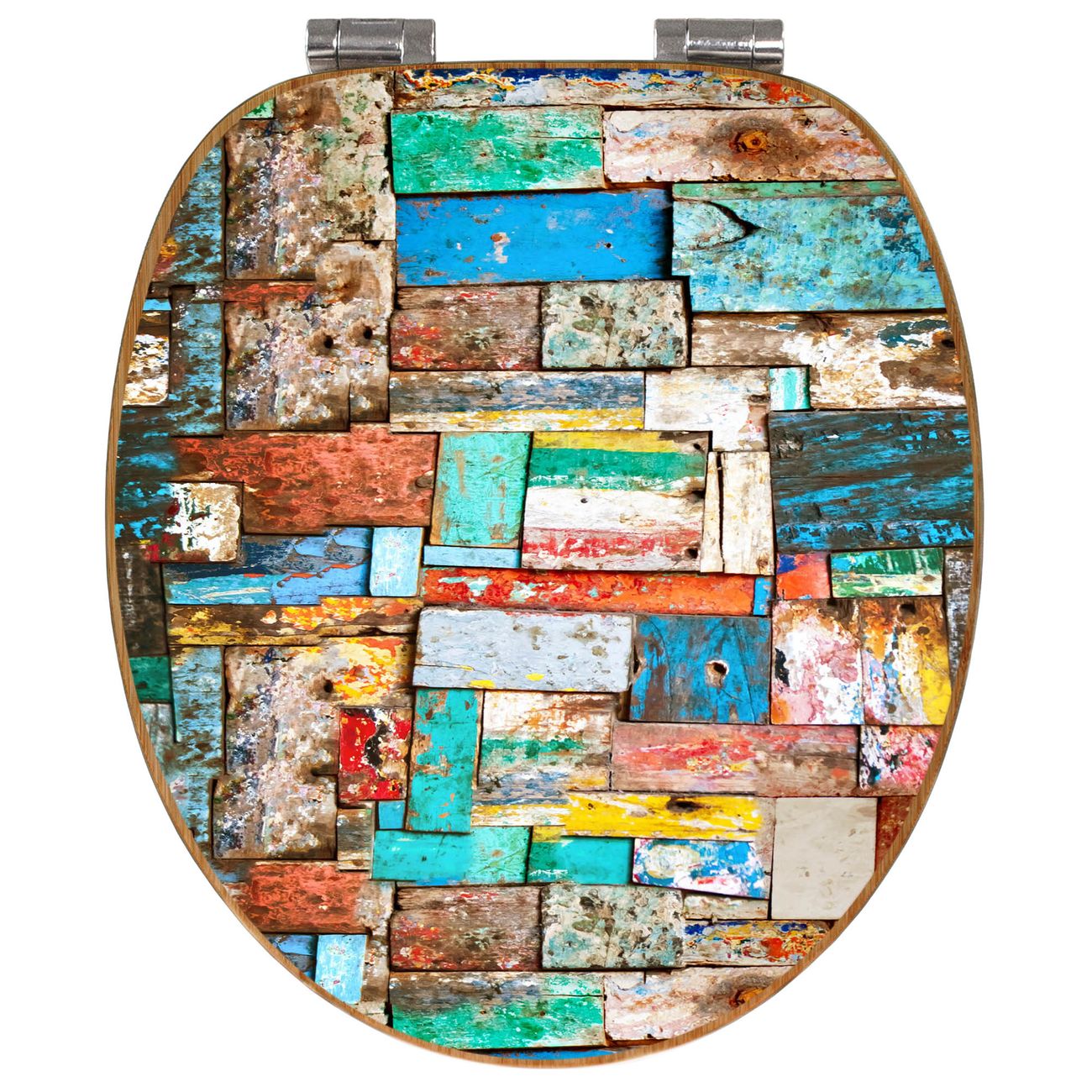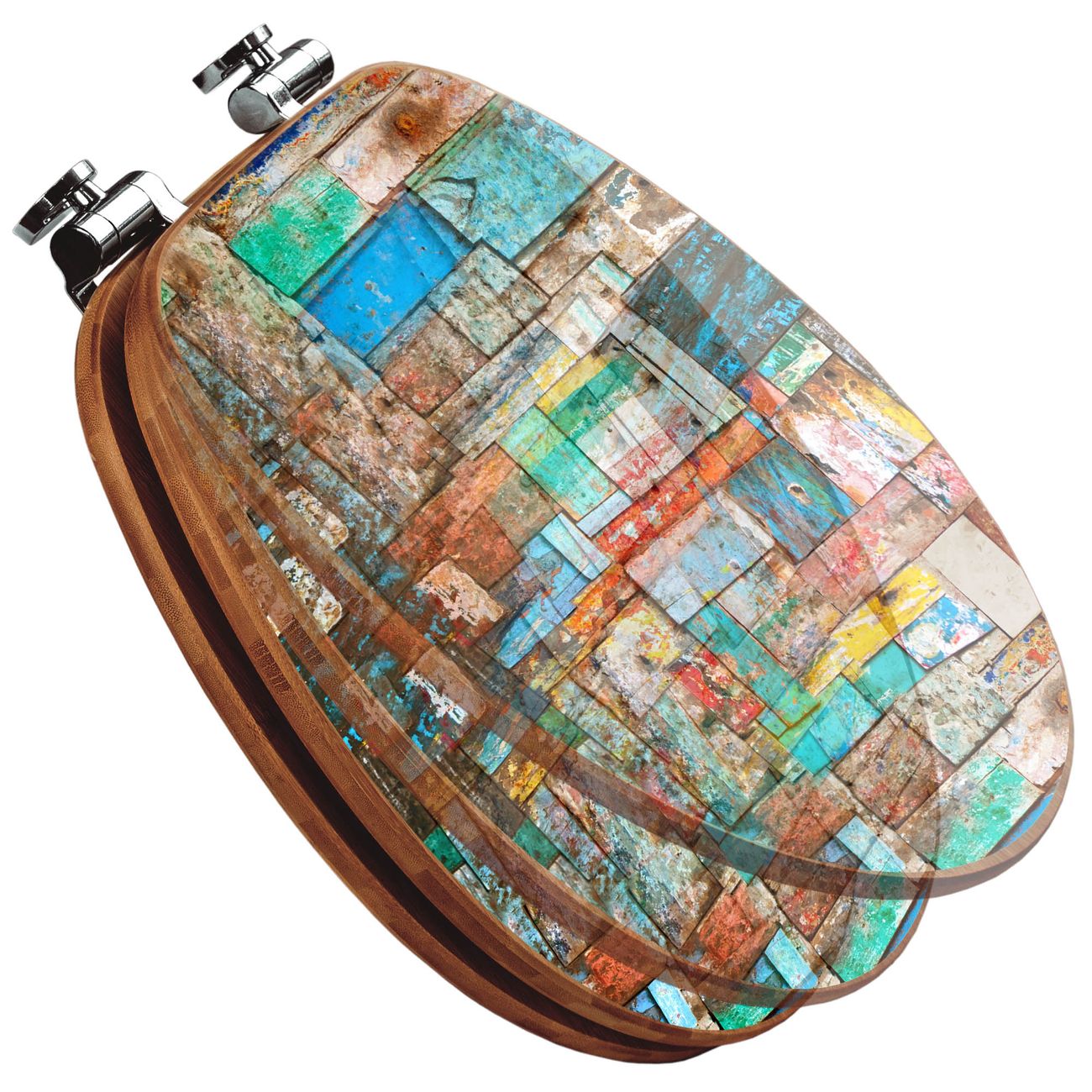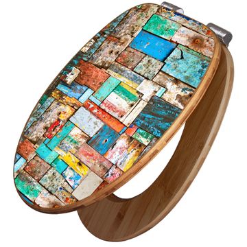 Design WC-Sitz Bambus Absenkautomatik Motiv Bunte Holzschindeln