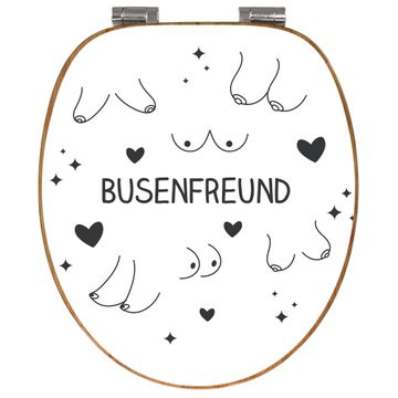 Mit dem banjado Toilettensitz in Bambus verbinden Sie Design und Funktionalität. Sie erhalten den WC-Sitz mit bewährter Holz Qualität und Universal Scharnieren. Das Motiv Motiv Busenfreund 2 besteht aus einer schutzlaminierten Motivfolie, die durch das Schutzlaminat zusätzlich vor Kratzern schützt. Durch diesen Motivdruck wird der WC-Sitz zu einem Blickfang in Ihrem Bad.