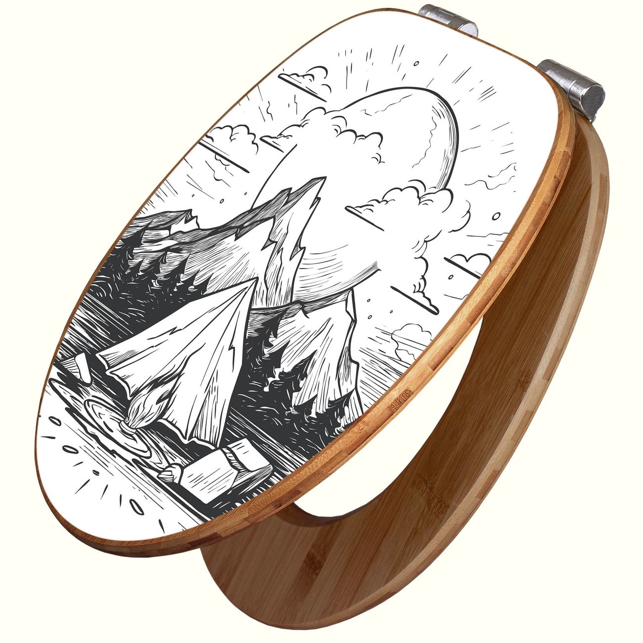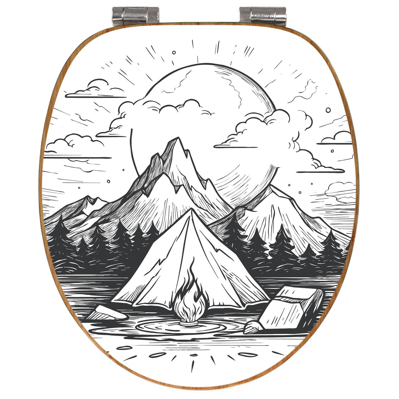 Design WC-Sitz Bambus Absenkautomatik Motiv Camping im Mondschein