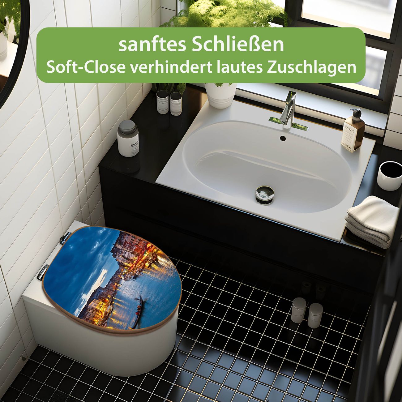 Design WC-Sitz Bambus Absenkautomatik Motiv Canale Grande Bei Nacht