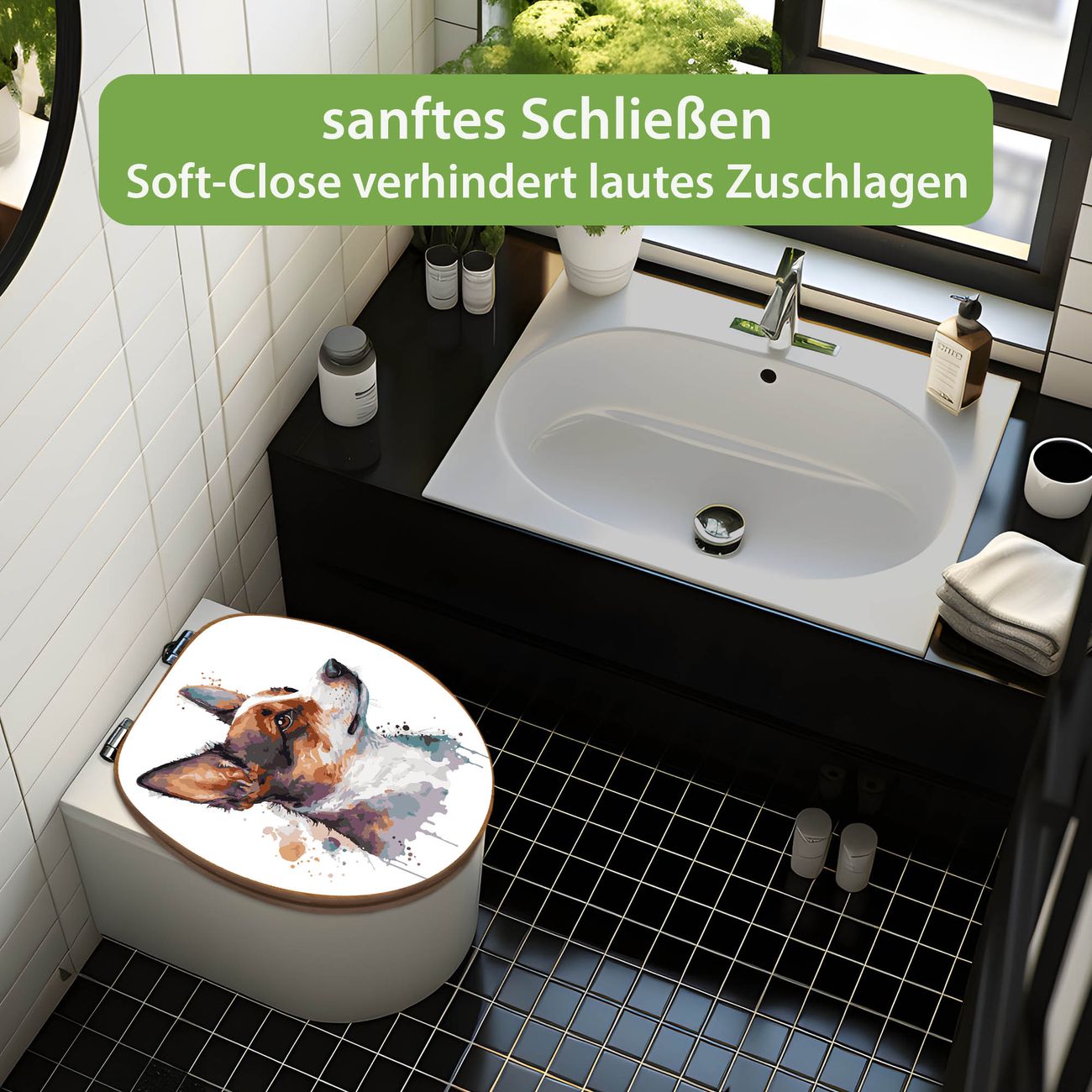 Design WC-Sitz Bambus Absenkautomatik Motiv Corgi Aquarell