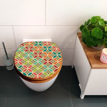 Mit dem banjado Toilettensitz in Bambus verbinden Sie Design und Funktionalität. Sie erhalten den WC-Sitz mit bewährter Holz Qualität und Universal Scharnieren. Das Motiv Motiv Diamant Muster besteht aus einer schutzlaminierten Motivfolie, die durch das Schutzlaminat zusätzlich vor Kratzern schützt. Durch diesen Motivdruck wird der WC-Sitz zu einem Blickfang in Ihrem Bad.