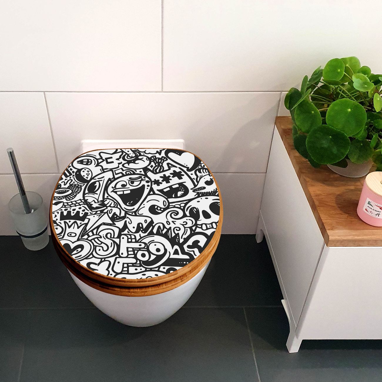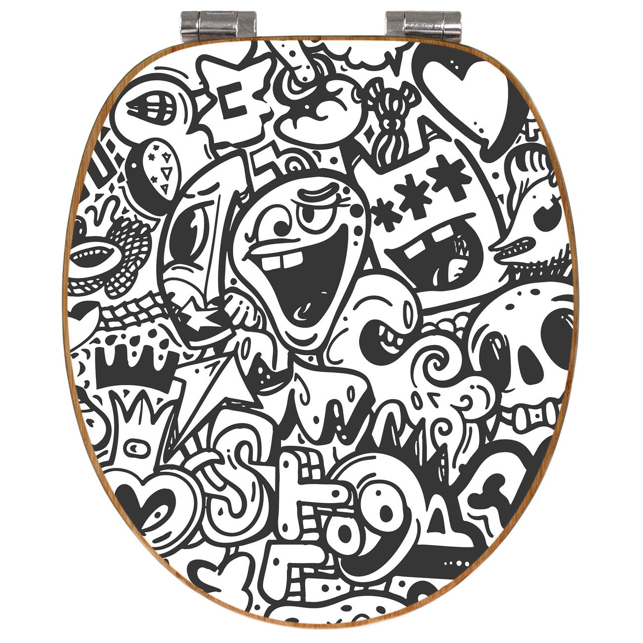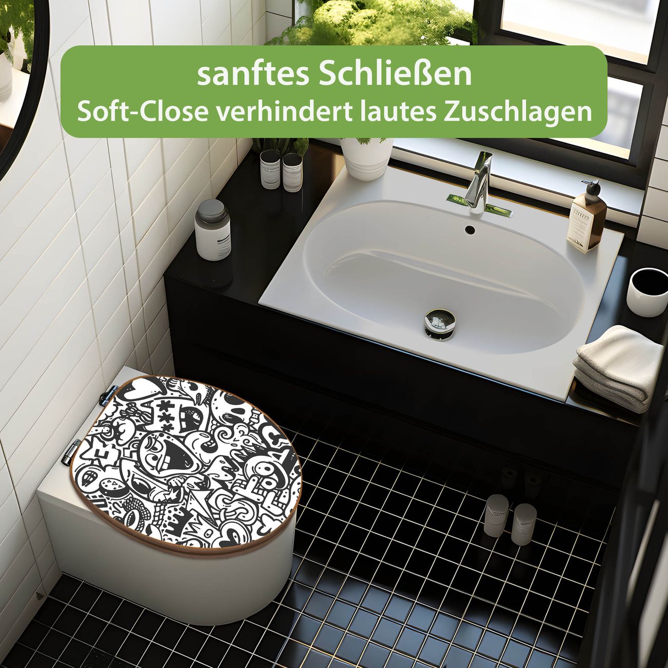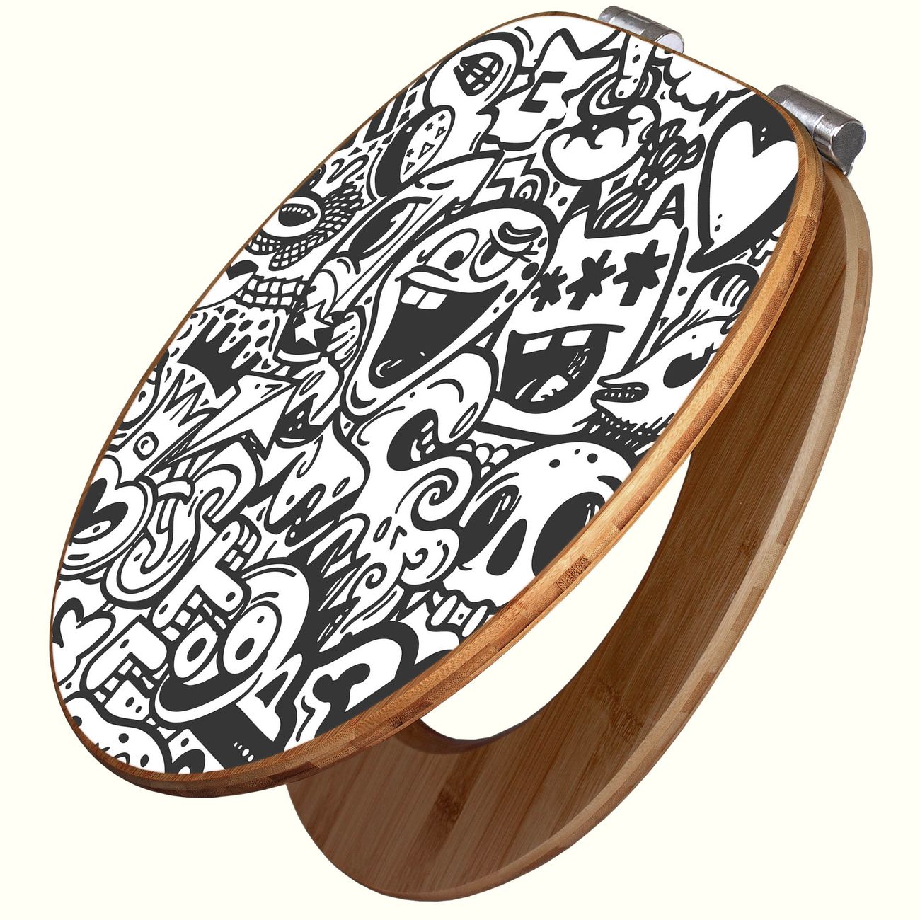 Design WC-Sitz Bambus Absenkautomatik Motiv Doodle Verrückt
