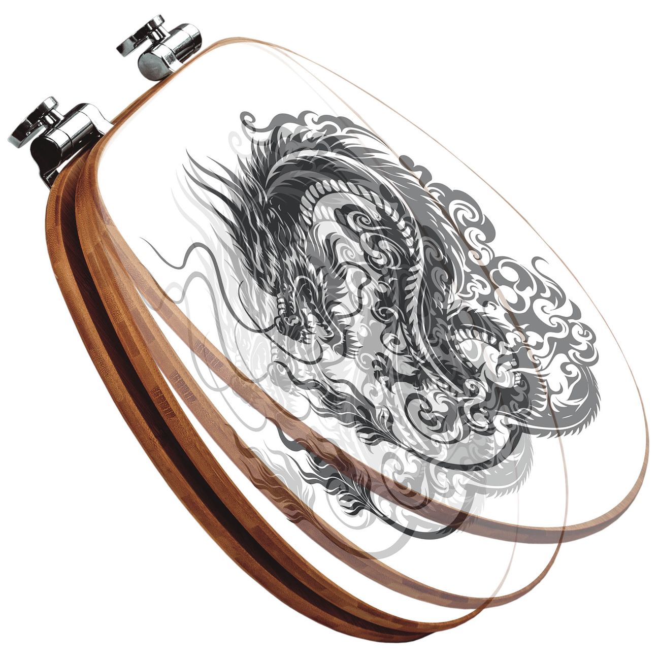Design WC-Sitz Bambus Absenkautomatik Motiv Drachen Silhouette