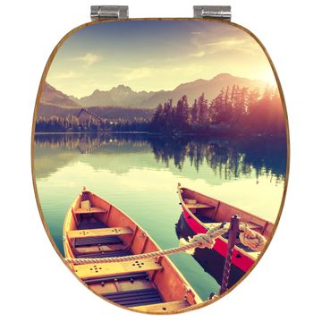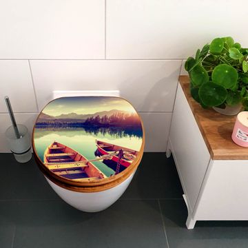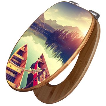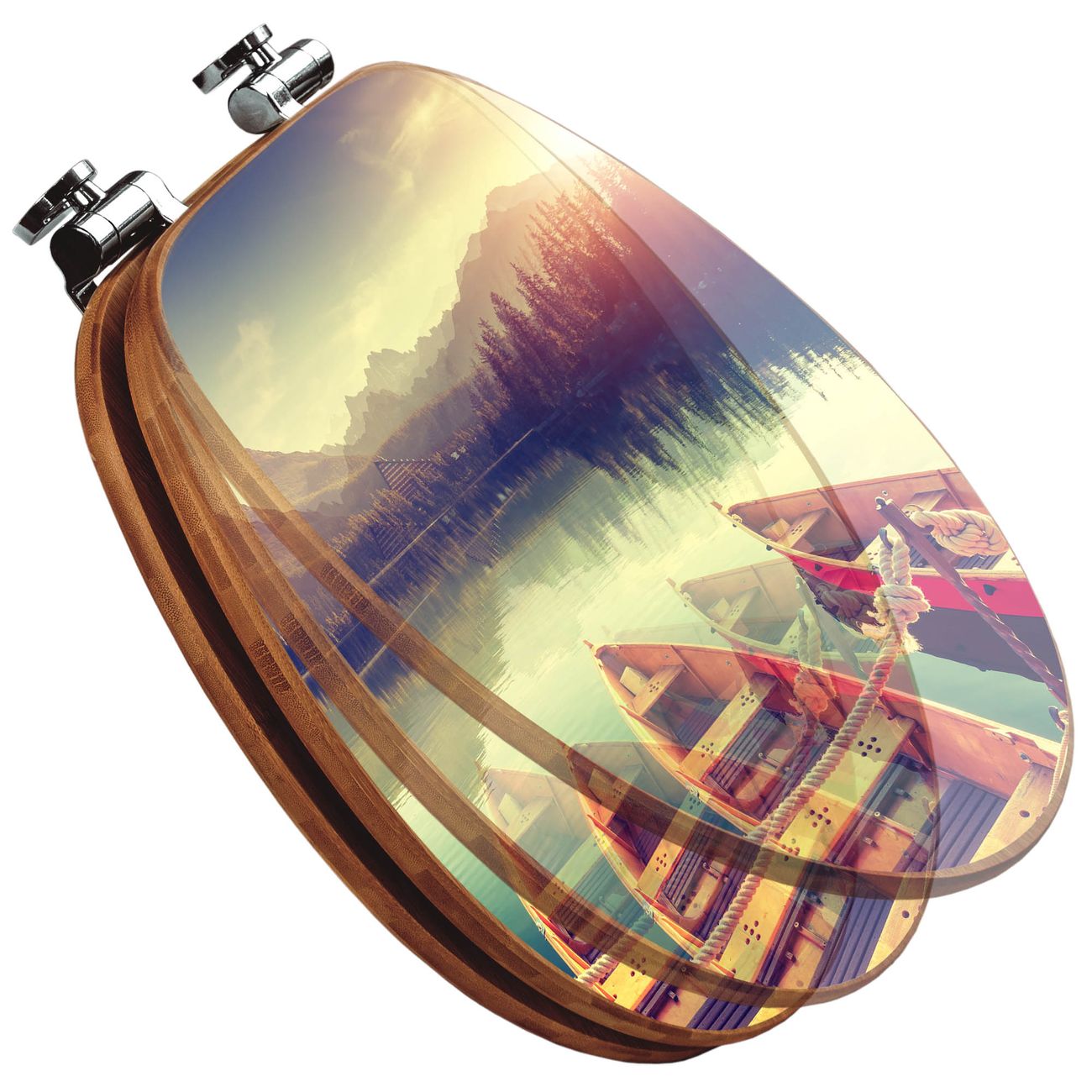 Design WC-Sitz Bambus Absenkautomatik Motiv Drei Boote Am Steg