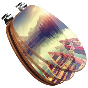 Mit dem banjado Toilettensitz in Bambus verbinden Sie Design und Funktionalität. Sie erhalten den WC-Sitz mit bewährter Holz Qualität und Universal Scharnieren. Das Motiv Motiv Drei Boote Am Steg besteht aus einer schutzlaminierten Motivfolie, die durch das Schutzlaminat zusätzlich vor Kratzern schützt. Durch diesen Motivdruck wird der WC-Sitz zu einem Blickfang in Ihrem Bad.