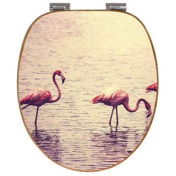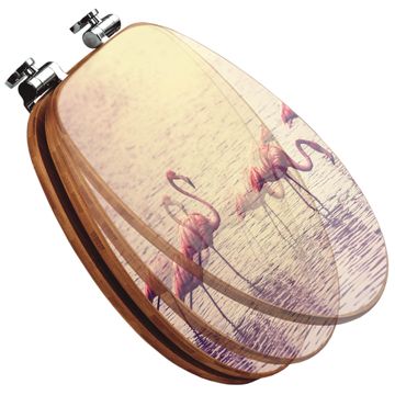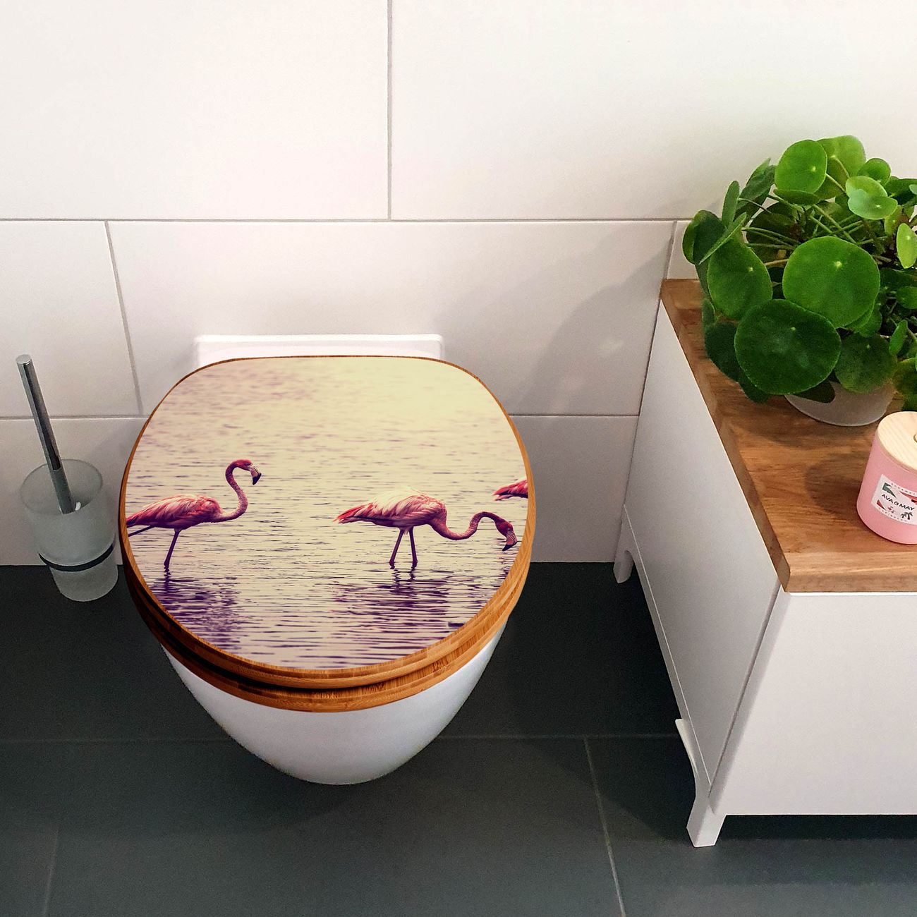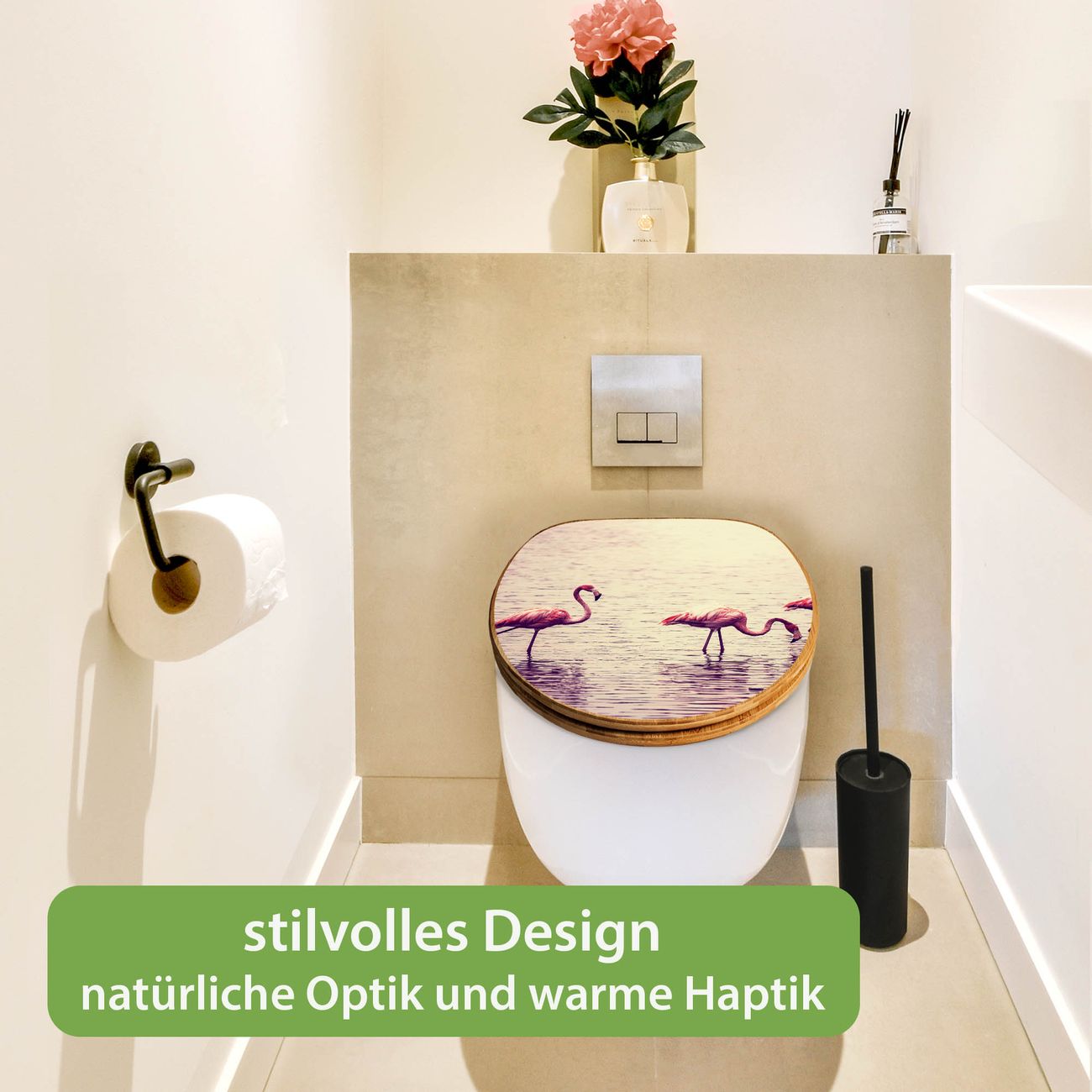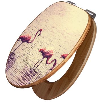 Design WC-Sitz Bambus Absenkautomatik Motiv Drei Flamnigos