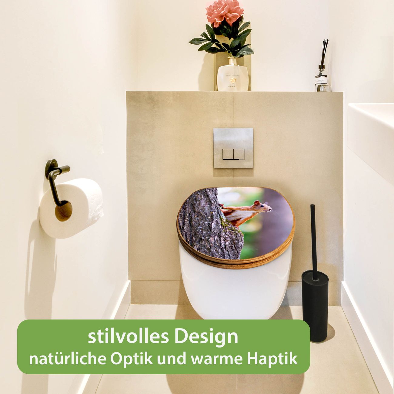Design WC-Sitz Bambus Absenkautomatik Motiv Eichhörnchen