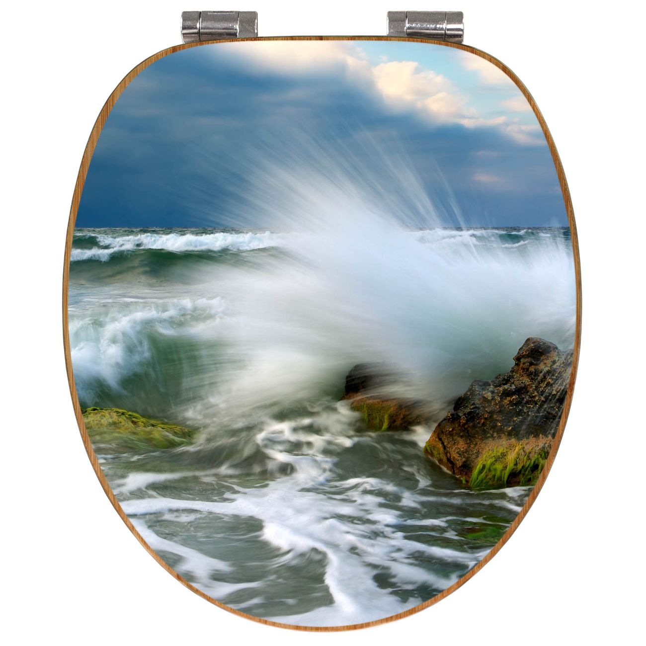 Mit dem banjado Toilettensitz in Bambus verbinden Sie Design und Funktionalität. Sie erhalten den WC-Sitz mit bewährter Holz Qualität und Universal Scharnieren. Das Motiv Motiv Einsteinwelle besteht aus einer schutzlaminierten Motivfolie, die durch das Schutzlaminat zusätzlich vor Kratzern schützt. Durch diesen Motivdruck wird der WC-Sitz zu einem Blickfang in Ihrem Bad.