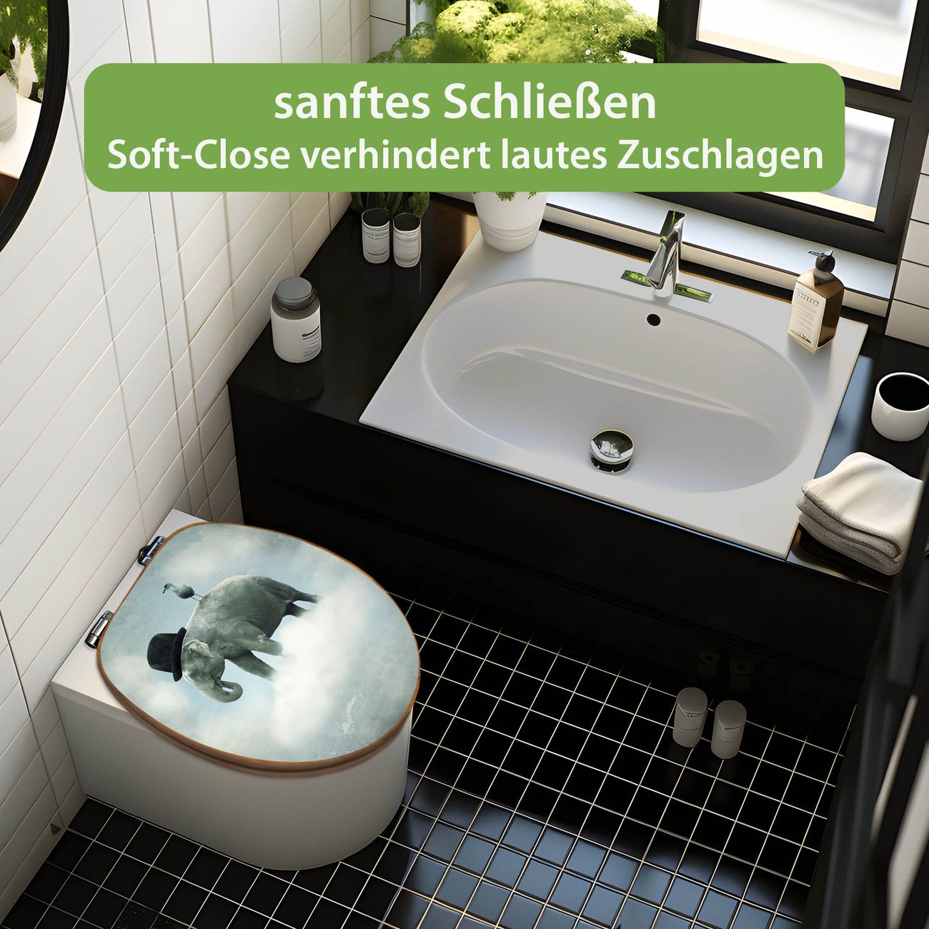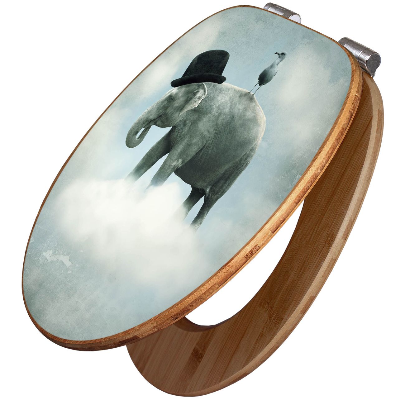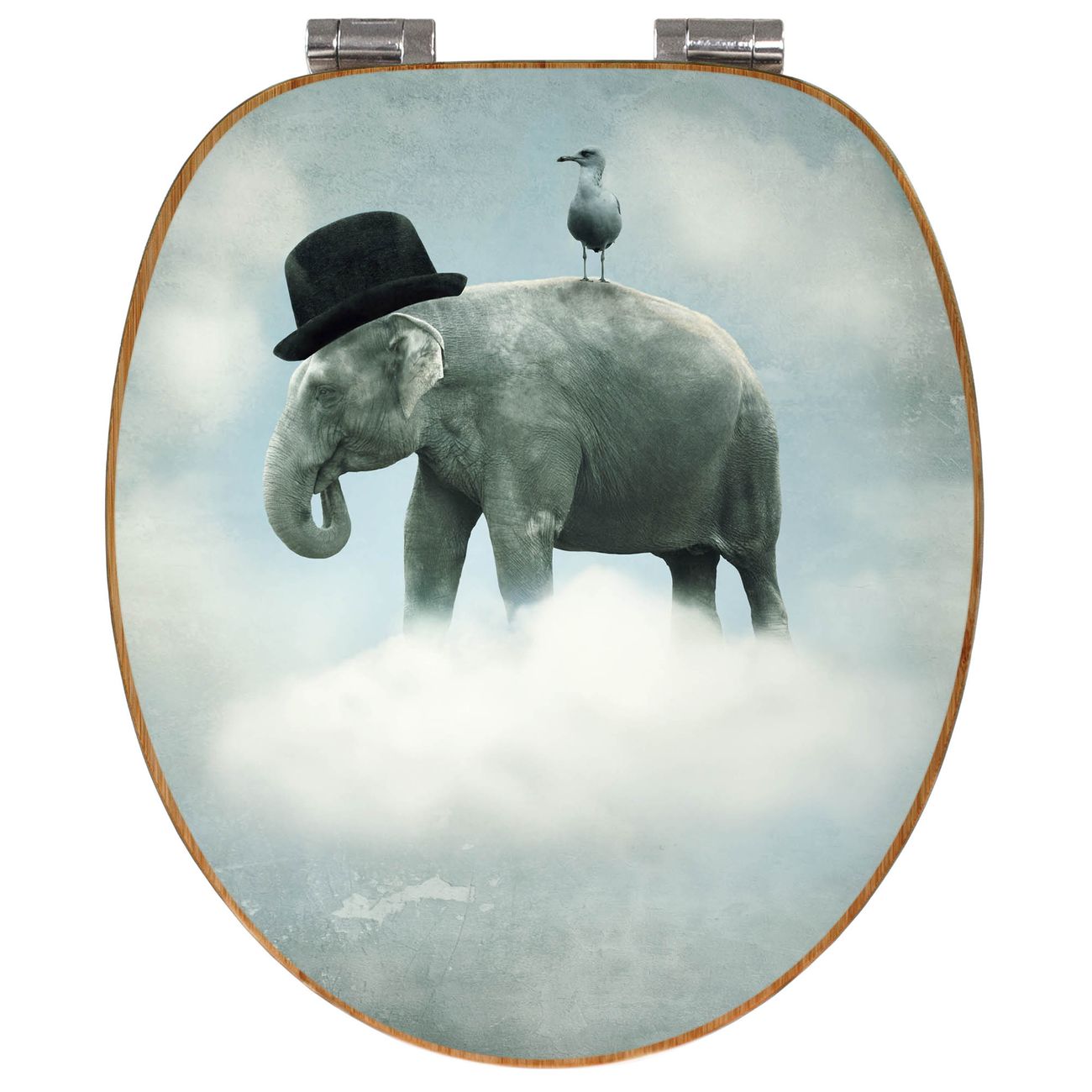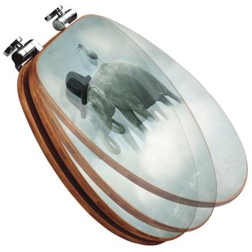 Design WC-Sitz Bambus Absenkautomatik Motiv Elefant und Möwe