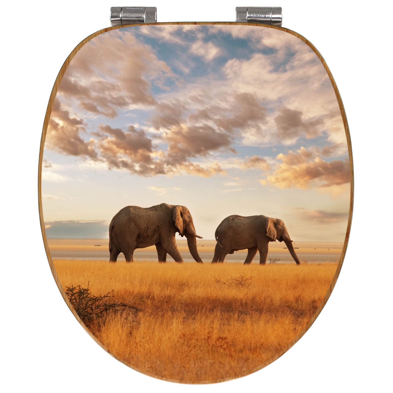 Mit dem banjado Toilettensitz in Bambus verbinden Sie Design und Funktionalität. Sie erhalten den WC-Sitz mit bewährter Holz Qualität und Universal Scharnieren. Das Motiv Motiv Elefanten besteht aus einer schutzlaminierten Motivfolie, die durch das Schutzlaminat zusätzlich vor Kratzern schützt. Durch diesen Motivdruck wird der WC-Sitz zu einem Blickfang in Ihrem Bad.