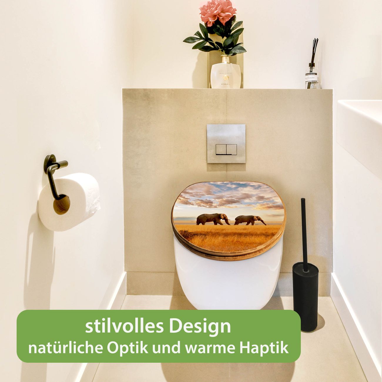 Design WC-Sitz Bambus Absenkautomatik Motiv Elefanten
