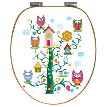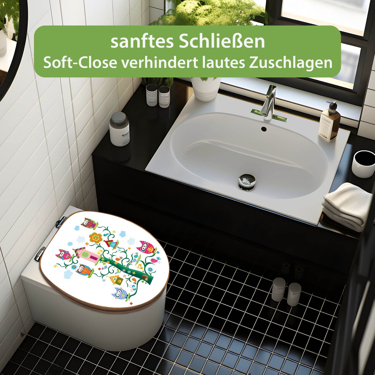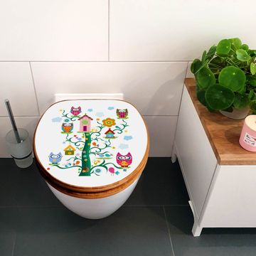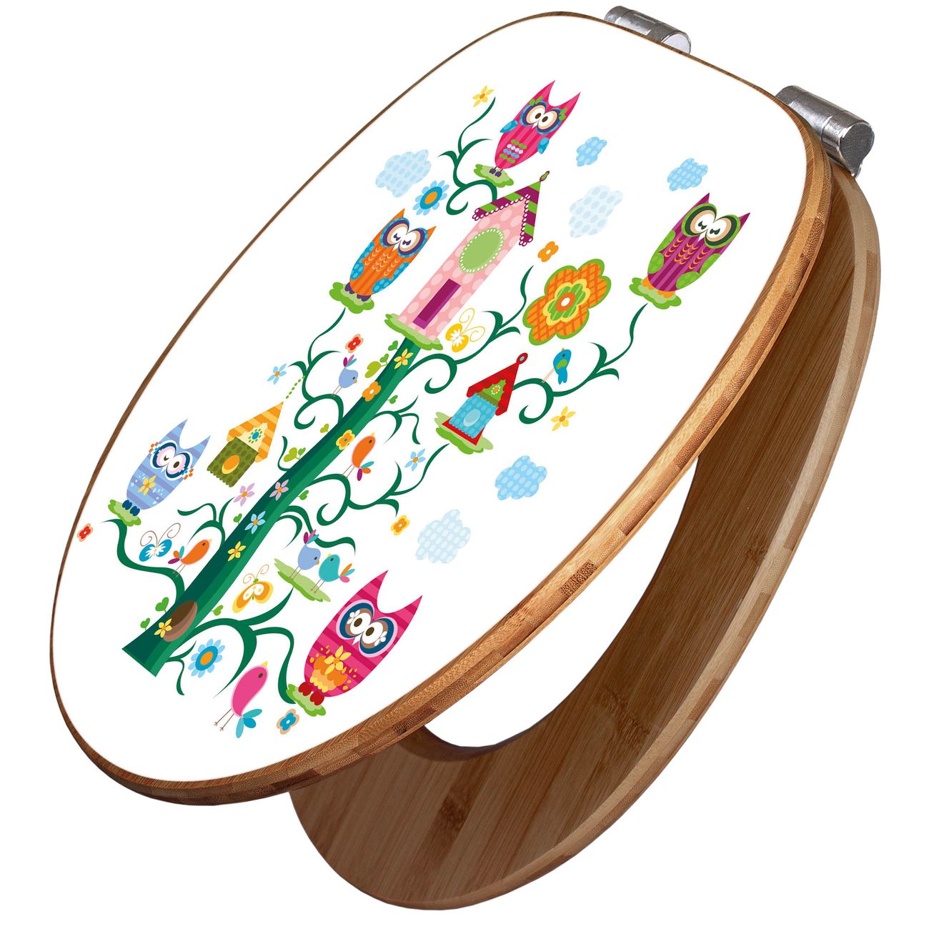 Design WC-Sitz Bambus Absenkautomatik Motiv Eulenfamilie
