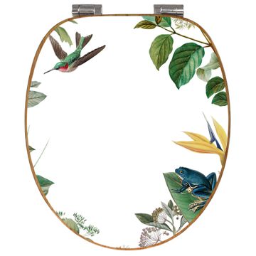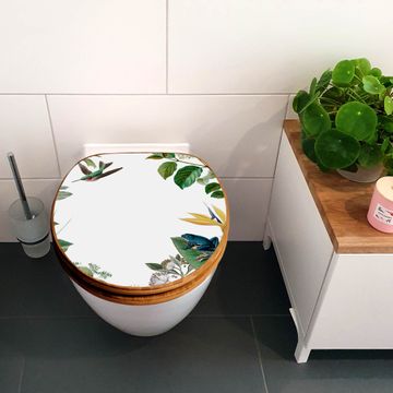 Mit dem banjado Toilettensitz in Bambus verbinden Sie Design und Funktionalität. Sie erhalten den WC-Sitz mit bewährter Holz Qualität und Universal Scharnieren. Das Motiv Motiv Exotisches Paradies besteht aus einer schutzlaminierten Motivfolie, die durch das Schutzlaminat zusätzlich vor Kratzern schützt. Durch diesen Motivdruck wird der WC-Sitz zu einem Blickfang in Ihrem Bad.