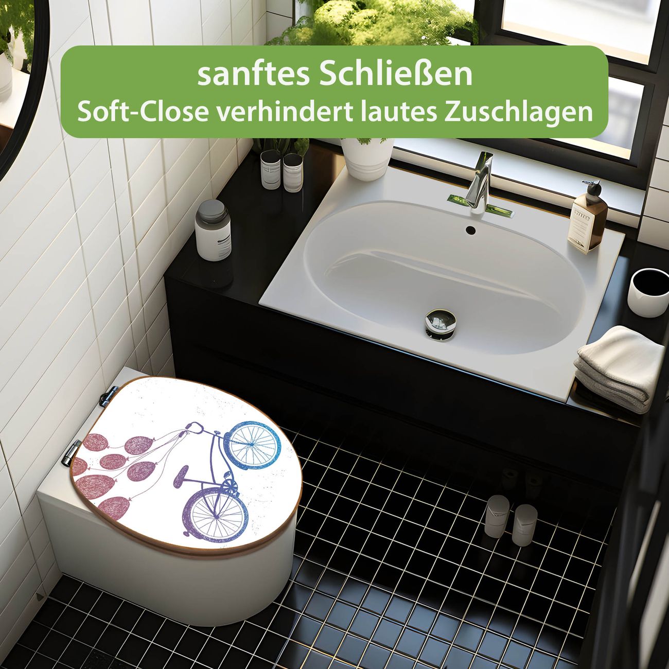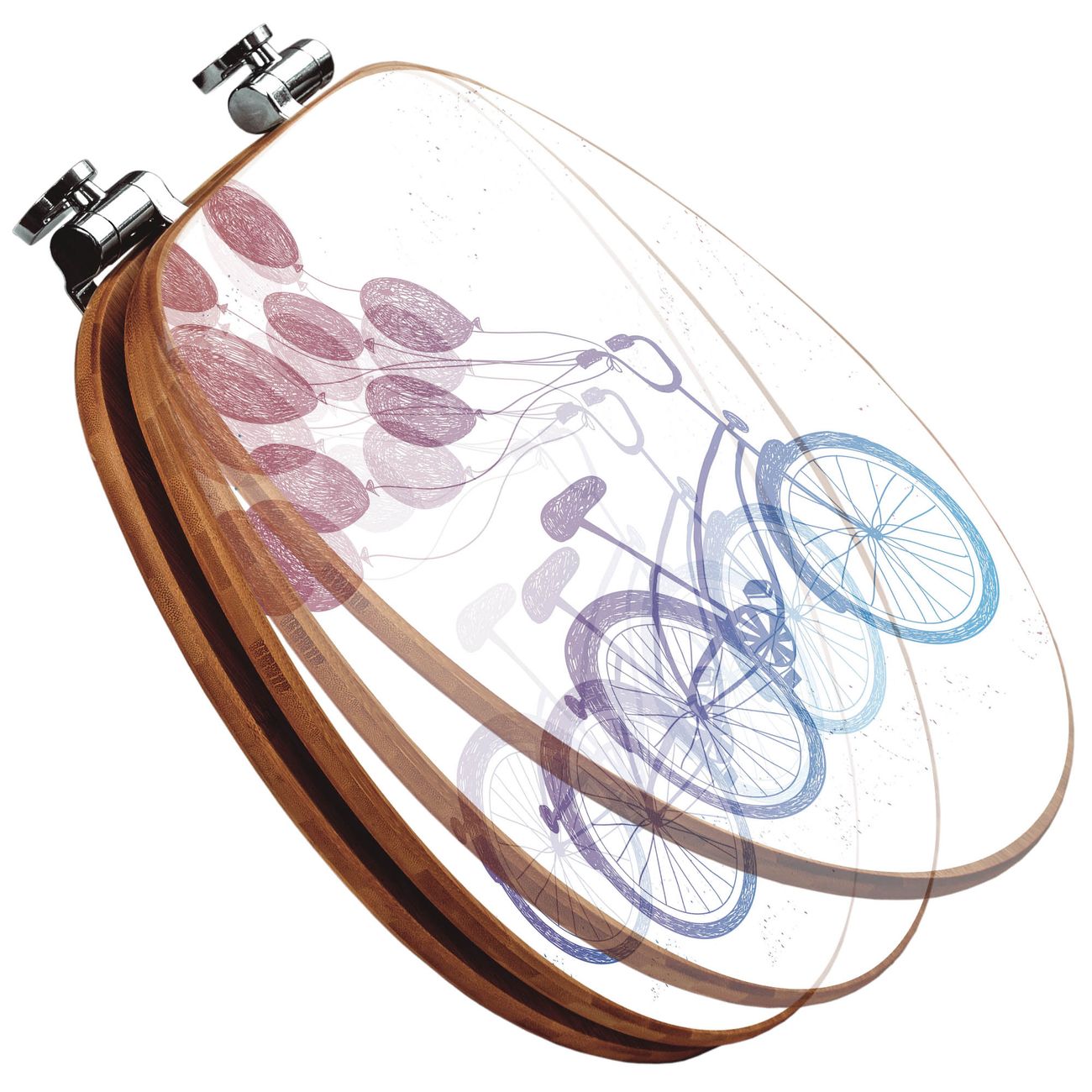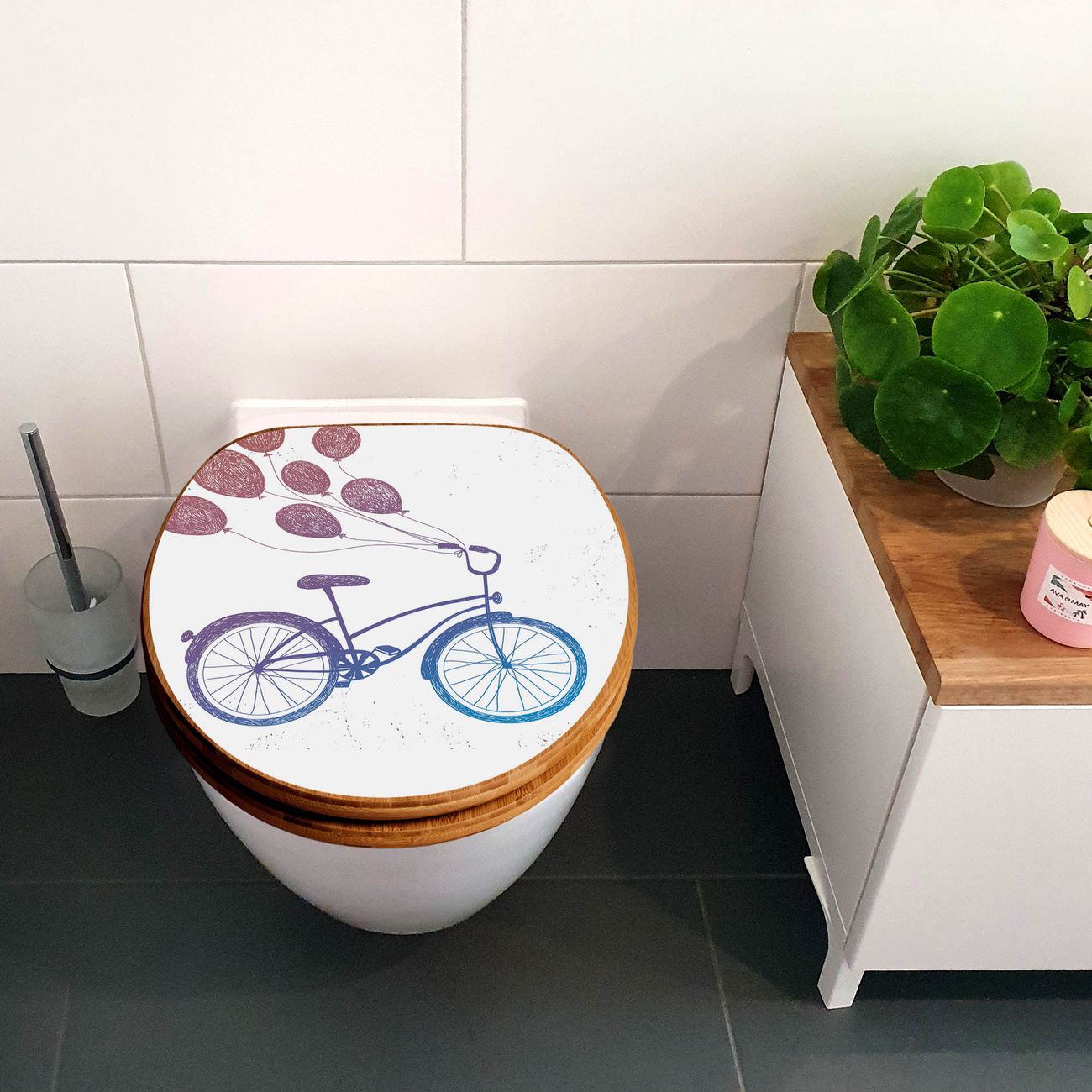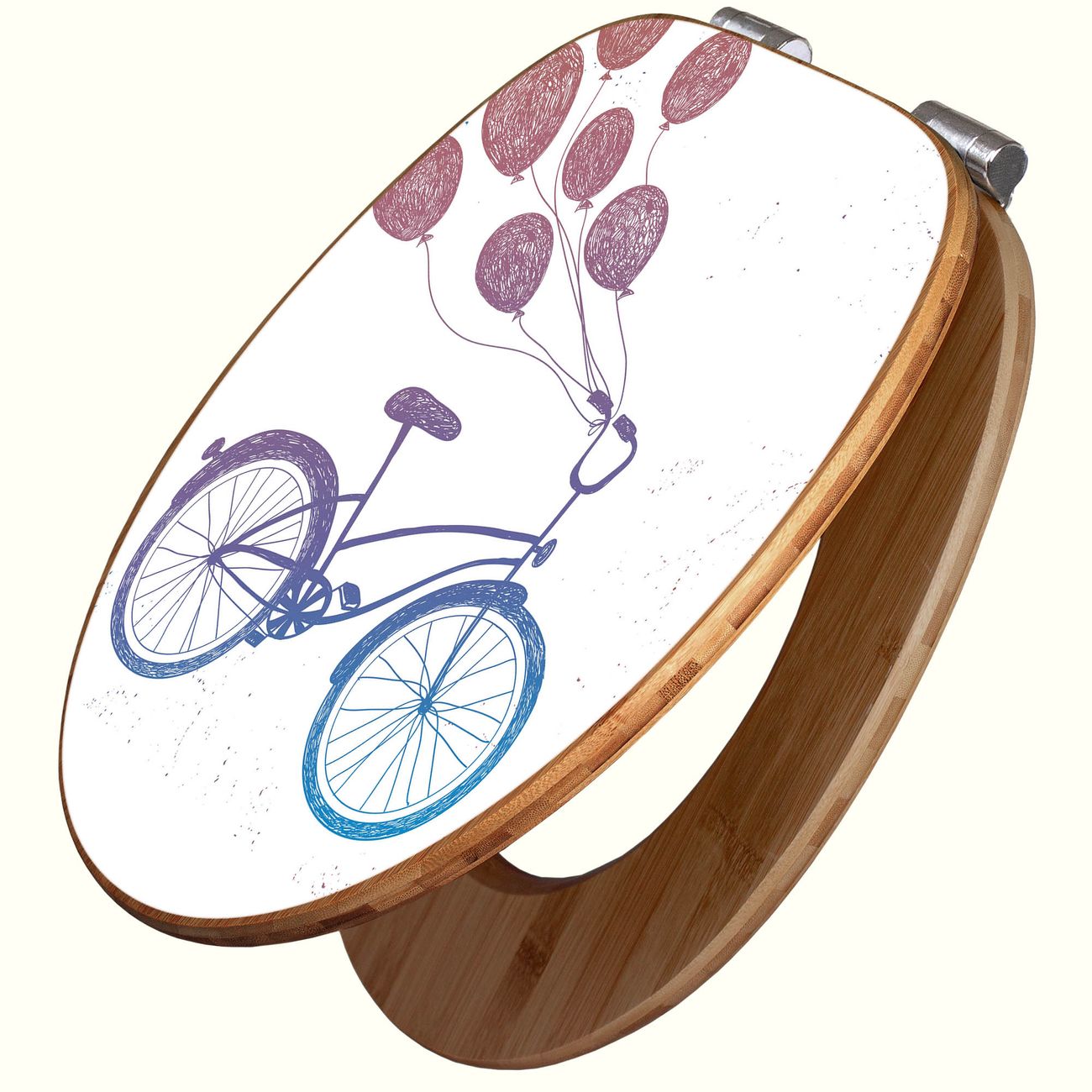 Design WC-Sitz Bambus Absenkautomatik Motiv Fahrrad mit Luftballons