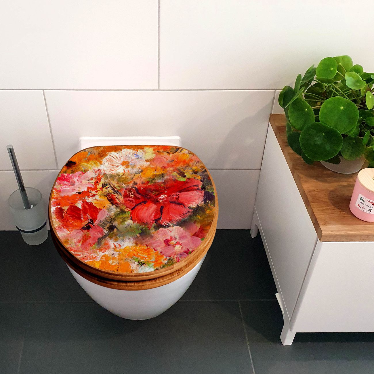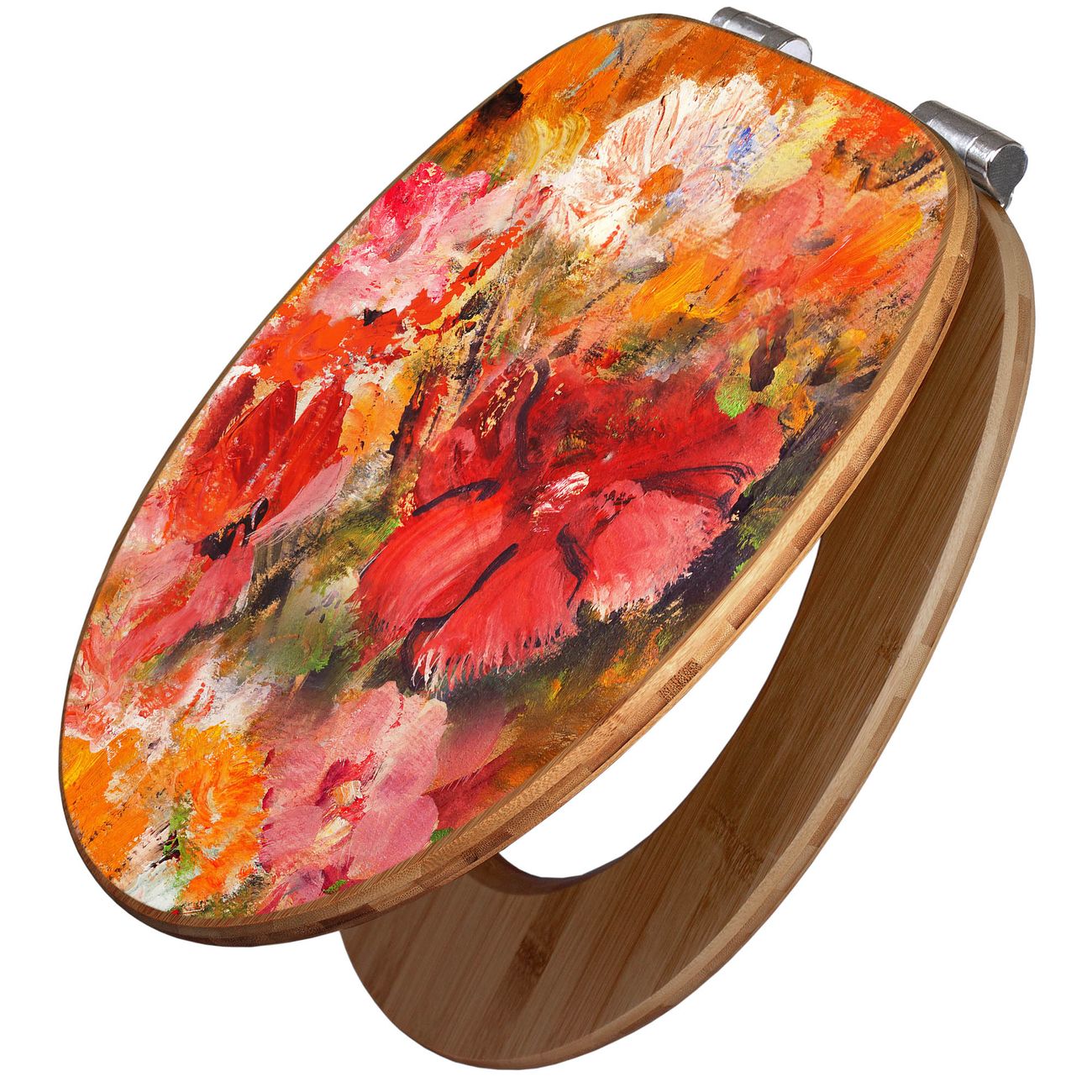 Mit dem banjado Toilettensitz in Bambus verbinden Sie Design und Funktionalität. Sie erhalten den WC-Sitz mit bewährter Holz Qualität und Universal Scharnieren. Das Motiv Motiv Fallende Blumen besteht aus einer schutzlaminierten Motivfolie, die durch das Schutzlaminat zusätzlich vor Kratzern schützt. Durch diesen Motivdruck wird der WC-Sitz zu einem Blickfang in Ihrem Bad.