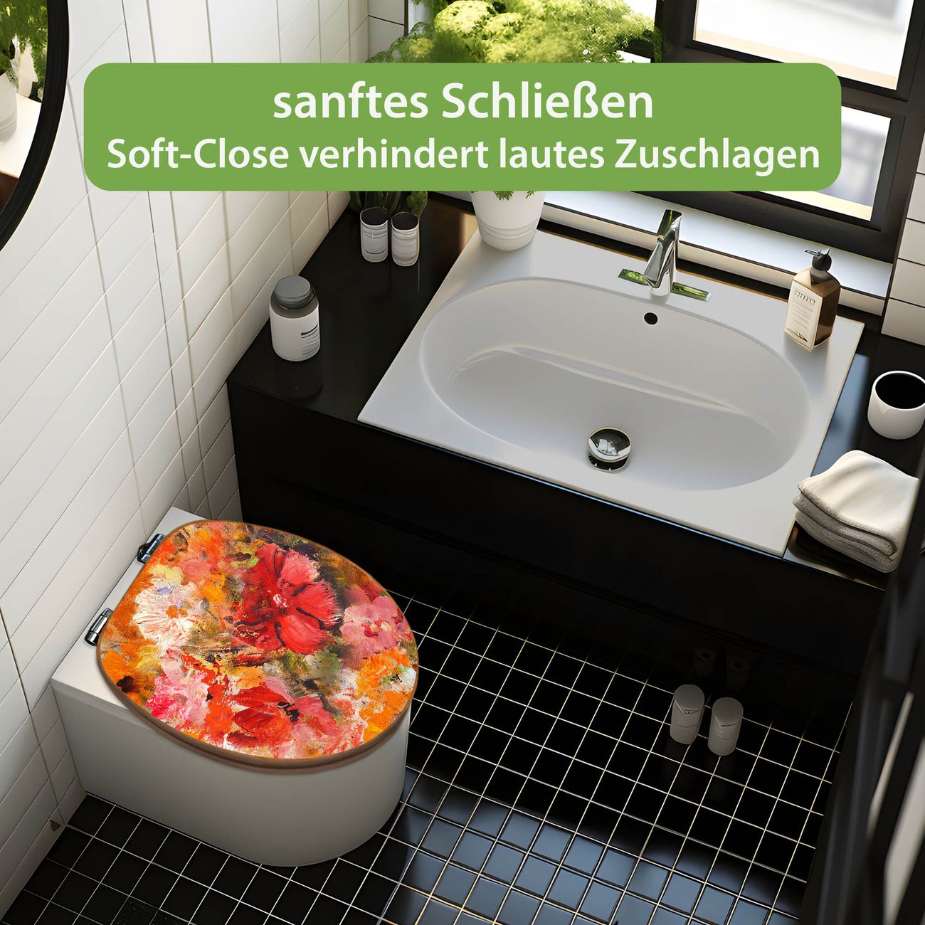 Design WC-Sitz Bambus Absenkautomatik Motiv Fallende Blumen