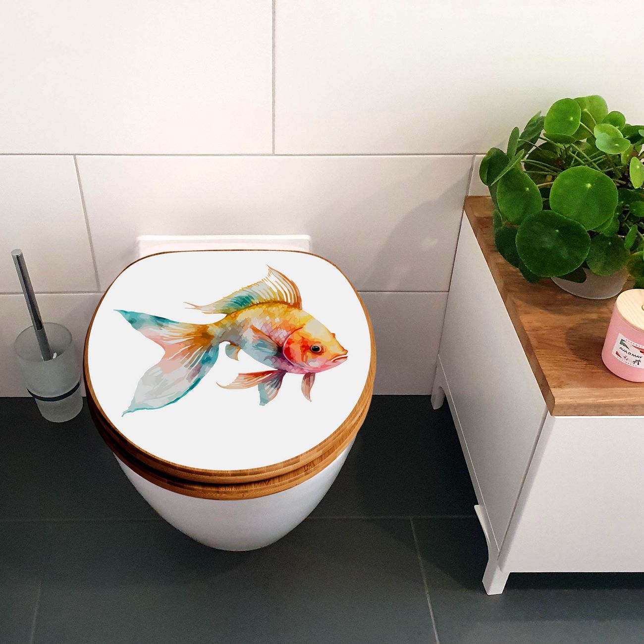 Design WC-Sitz Bambus Absenkautomatik Motiv Farbenfroher Goldfisch