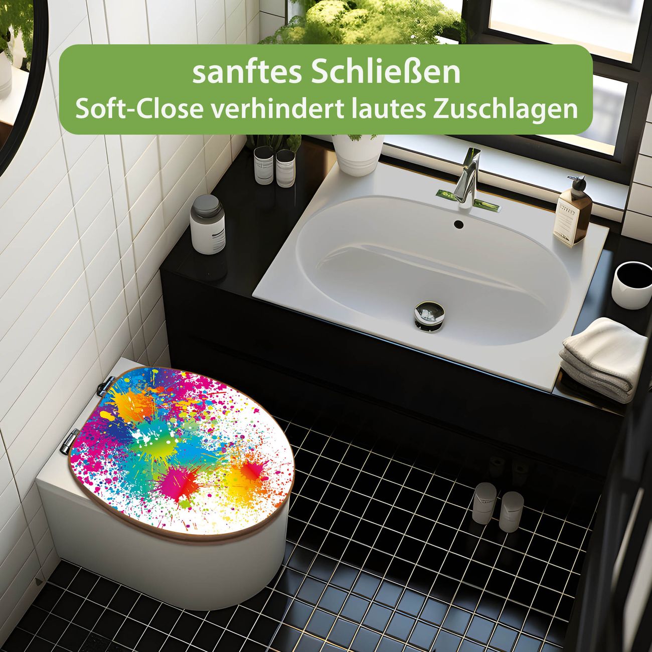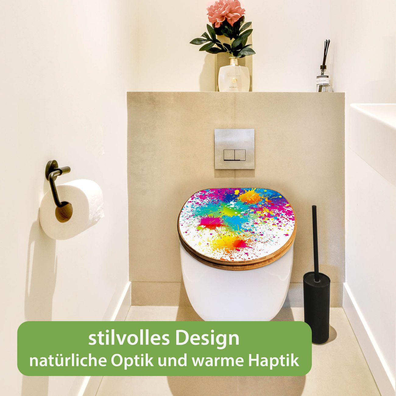 Design WC-Sitz Bambus Absenkautomatik Motiv Farbspritzer