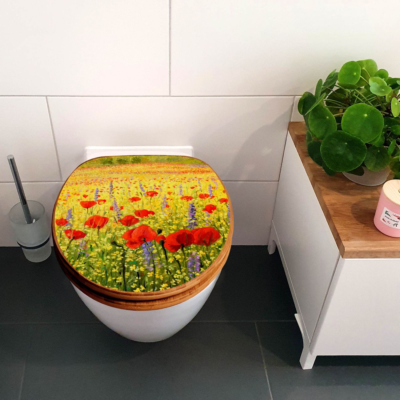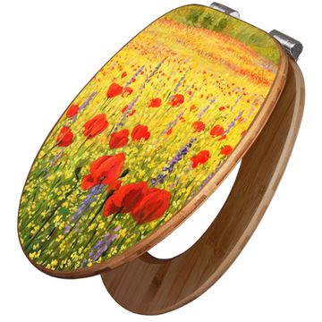 Design WC-Sitz Bambus Absenkautomatik Motiv Feld Mit Mohnblumen