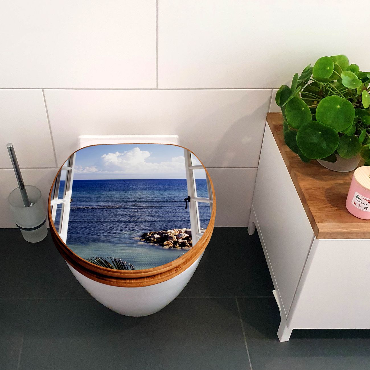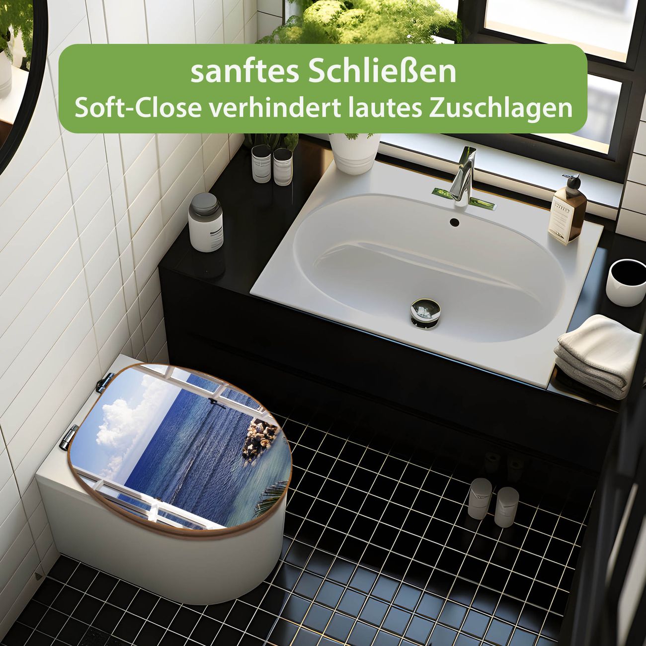 Design WC-Sitz Bambus Absenkautomatik Motiv Fensterpanorama