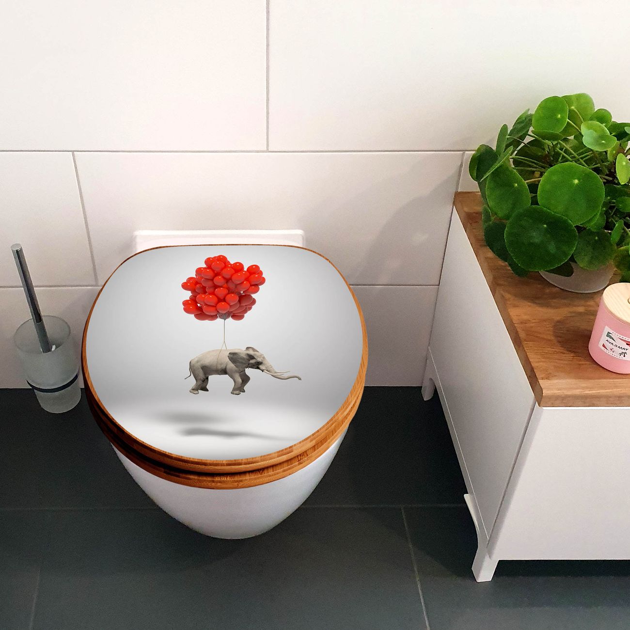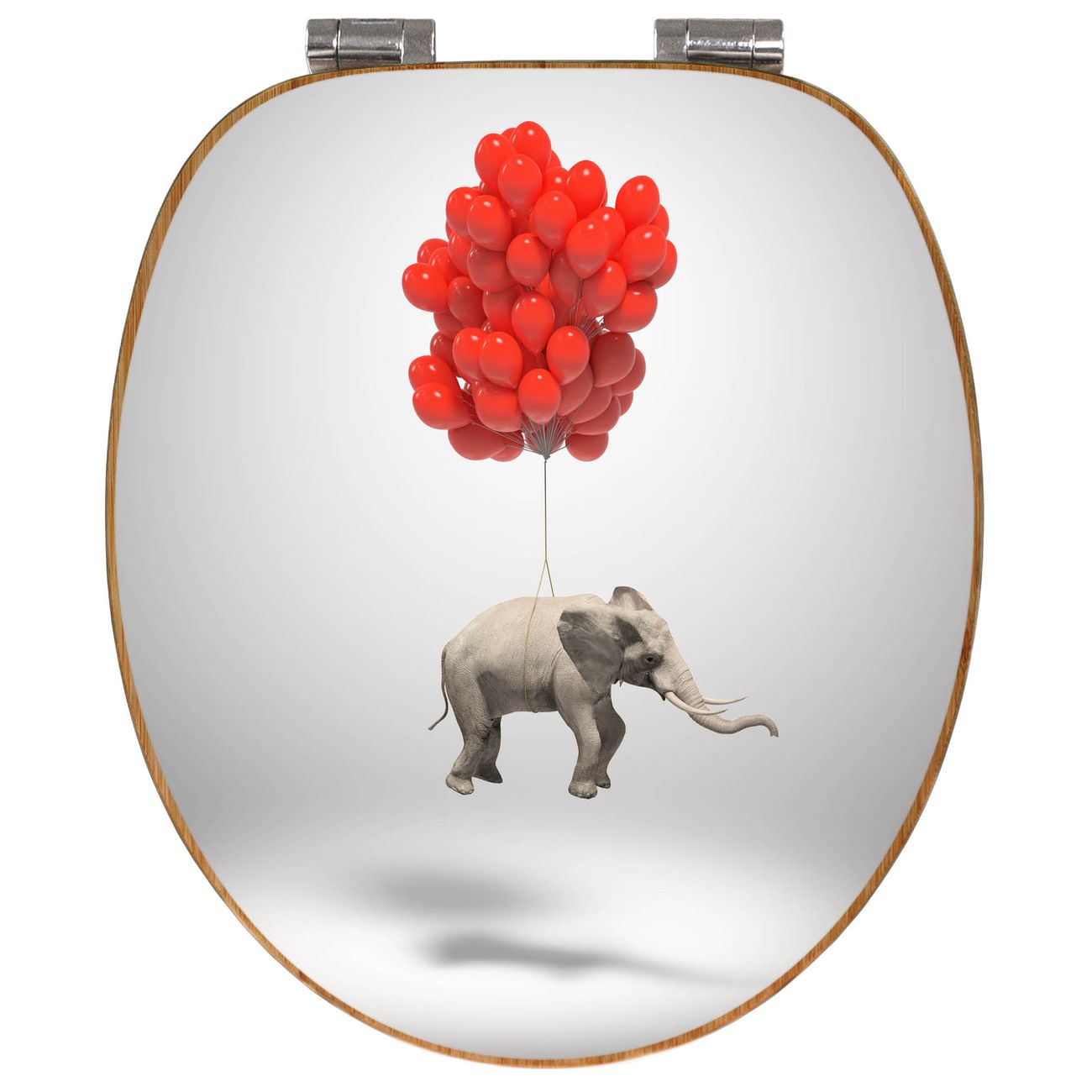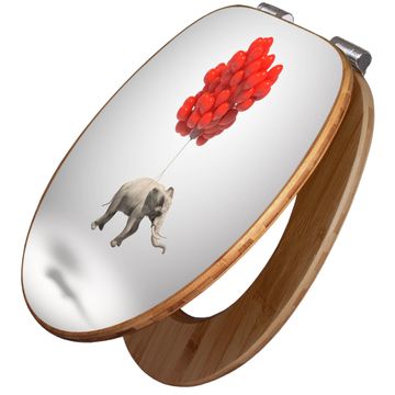 Design WC-Sitz Bambus Absenkautomatik Motiv Fliegender Elefant