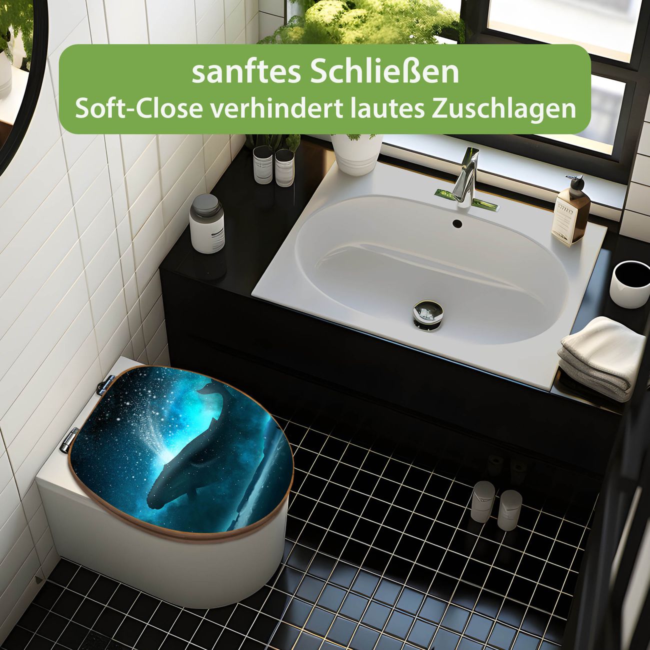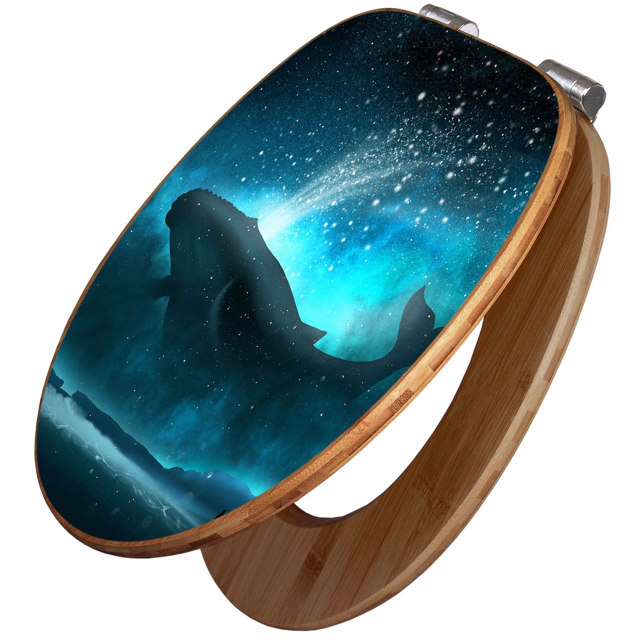 Design WC-Sitz Bambus Absenkautomatik Motiv fliegender Wal