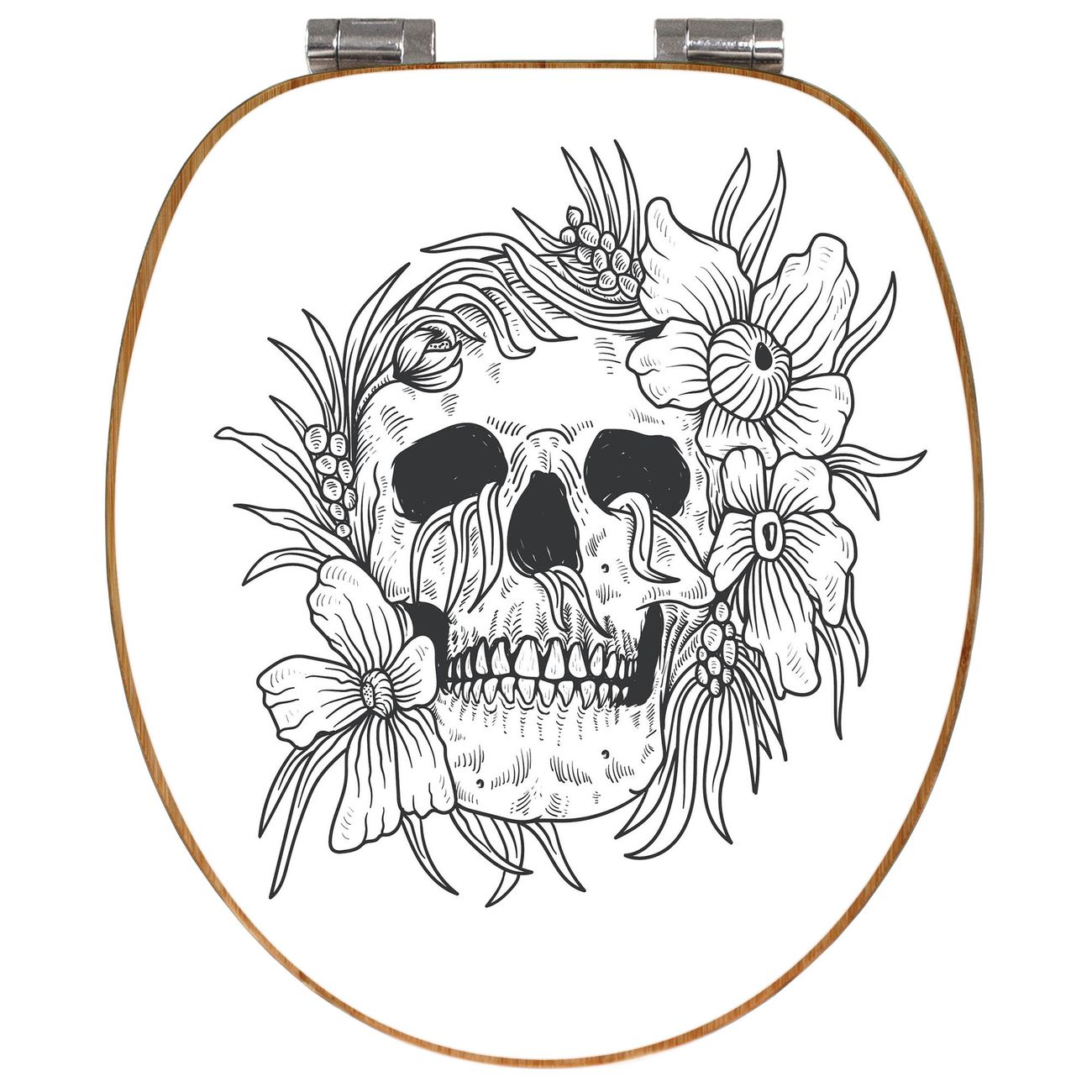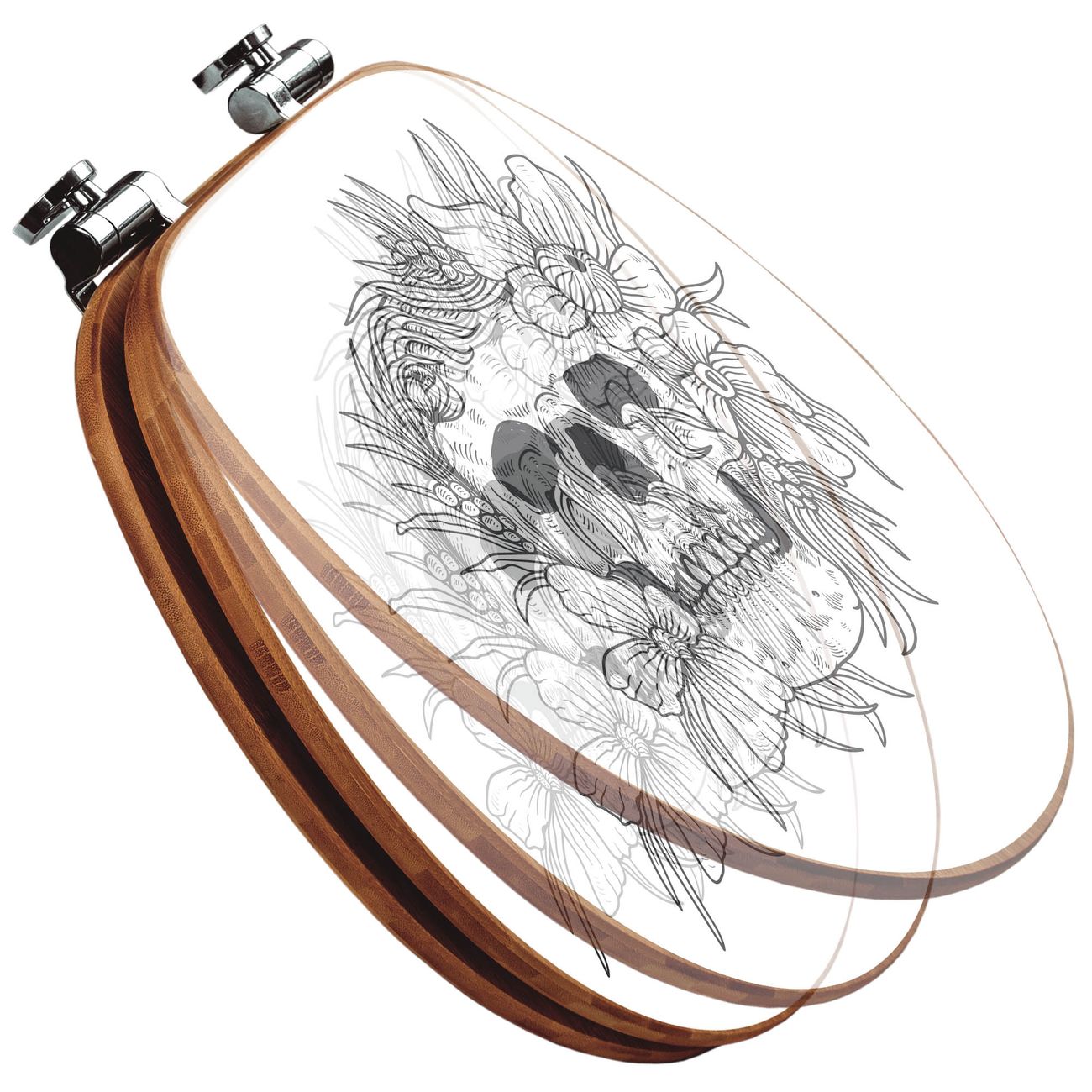 Design WC-Sitz Bambus Absenkautomatik Motiv Floral Skull 2