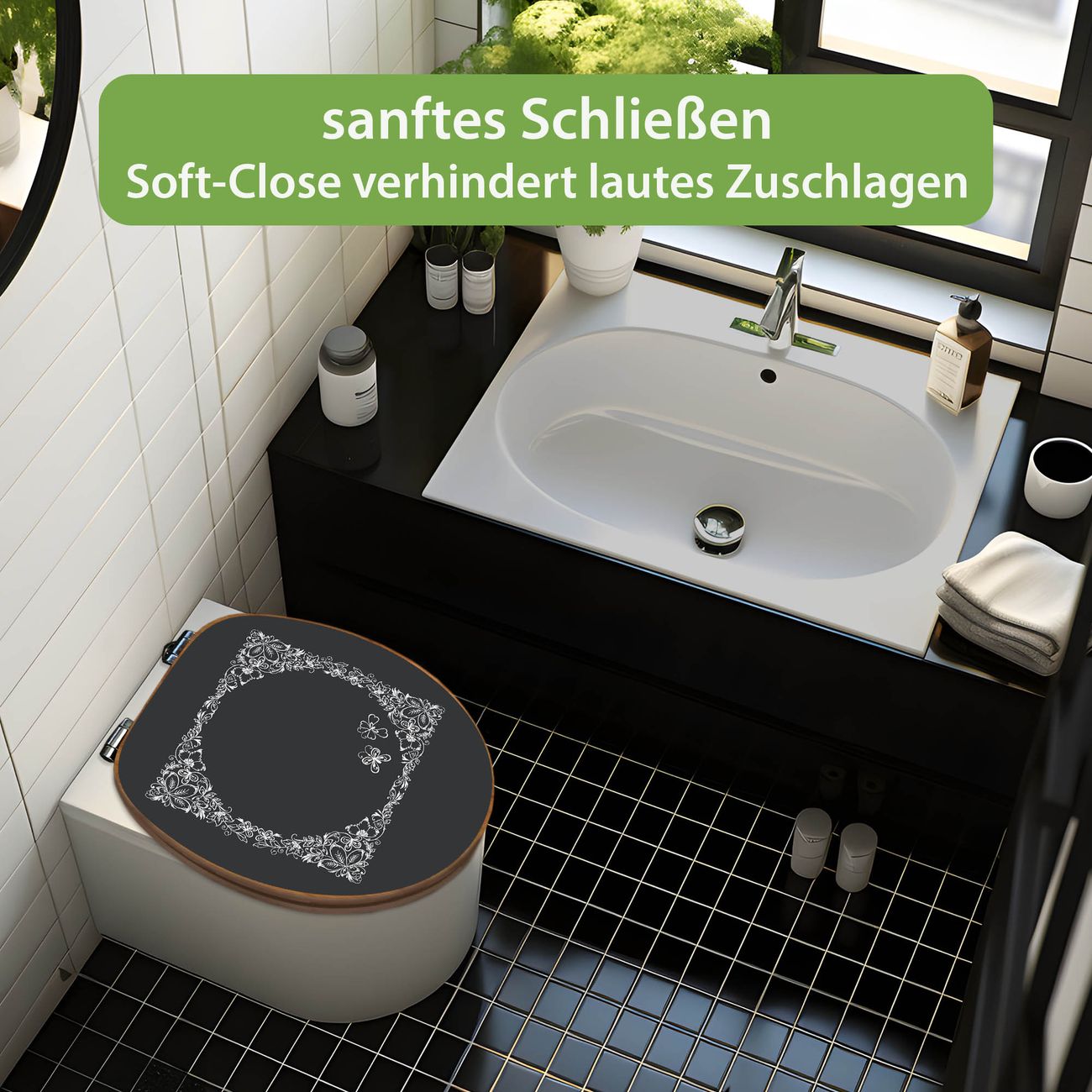 Design WC-Sitz Bambus Absenkautomatik Motiv Floraler Rahmen 3