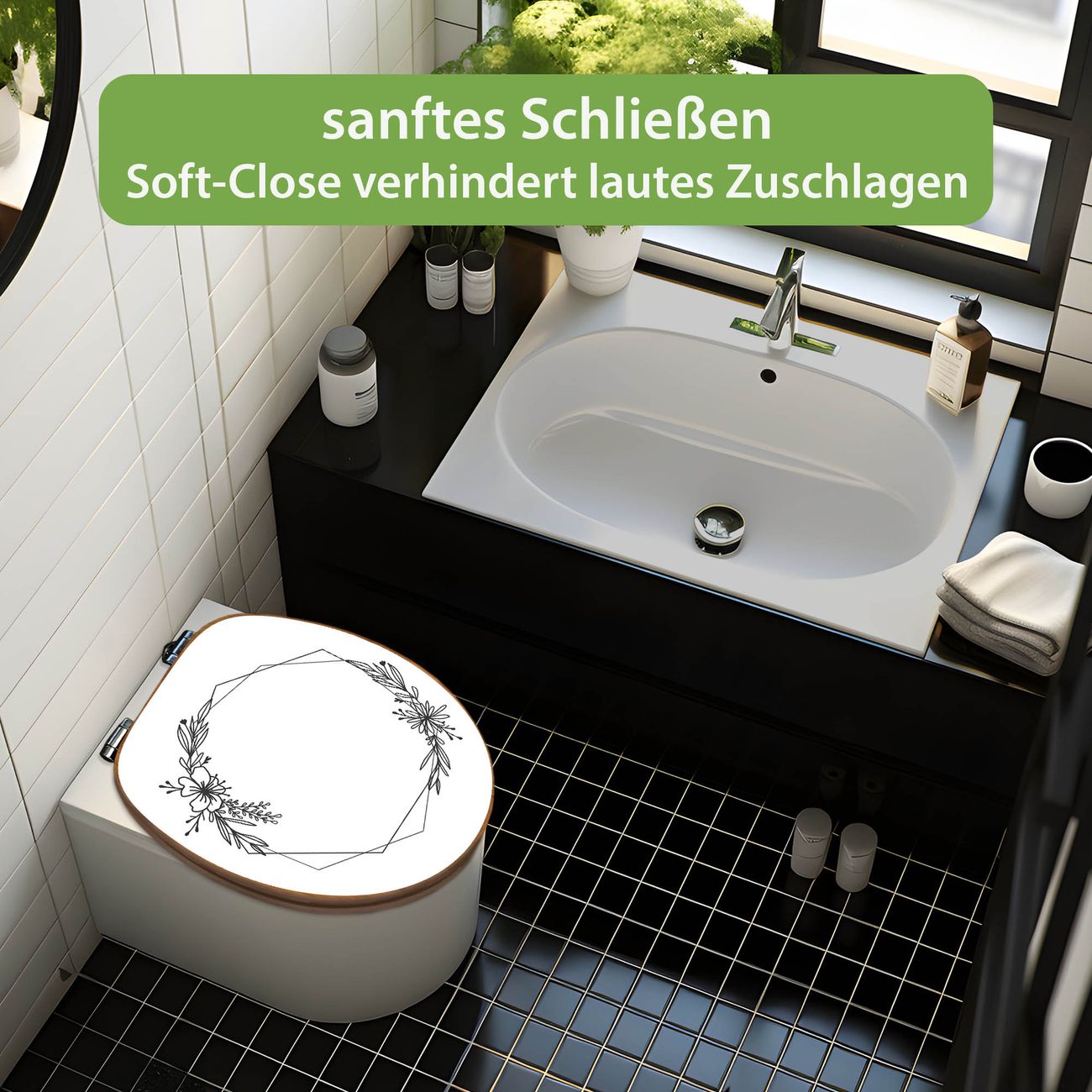 Design WC-Sitz Bambus Absenkautomatik Motiv Floraler Rahmen