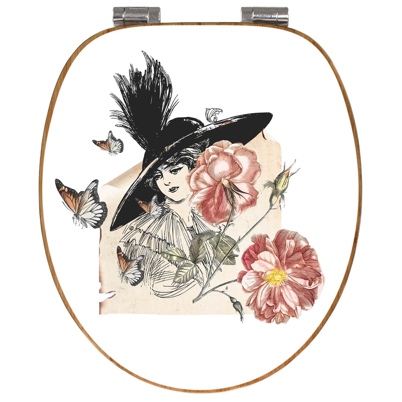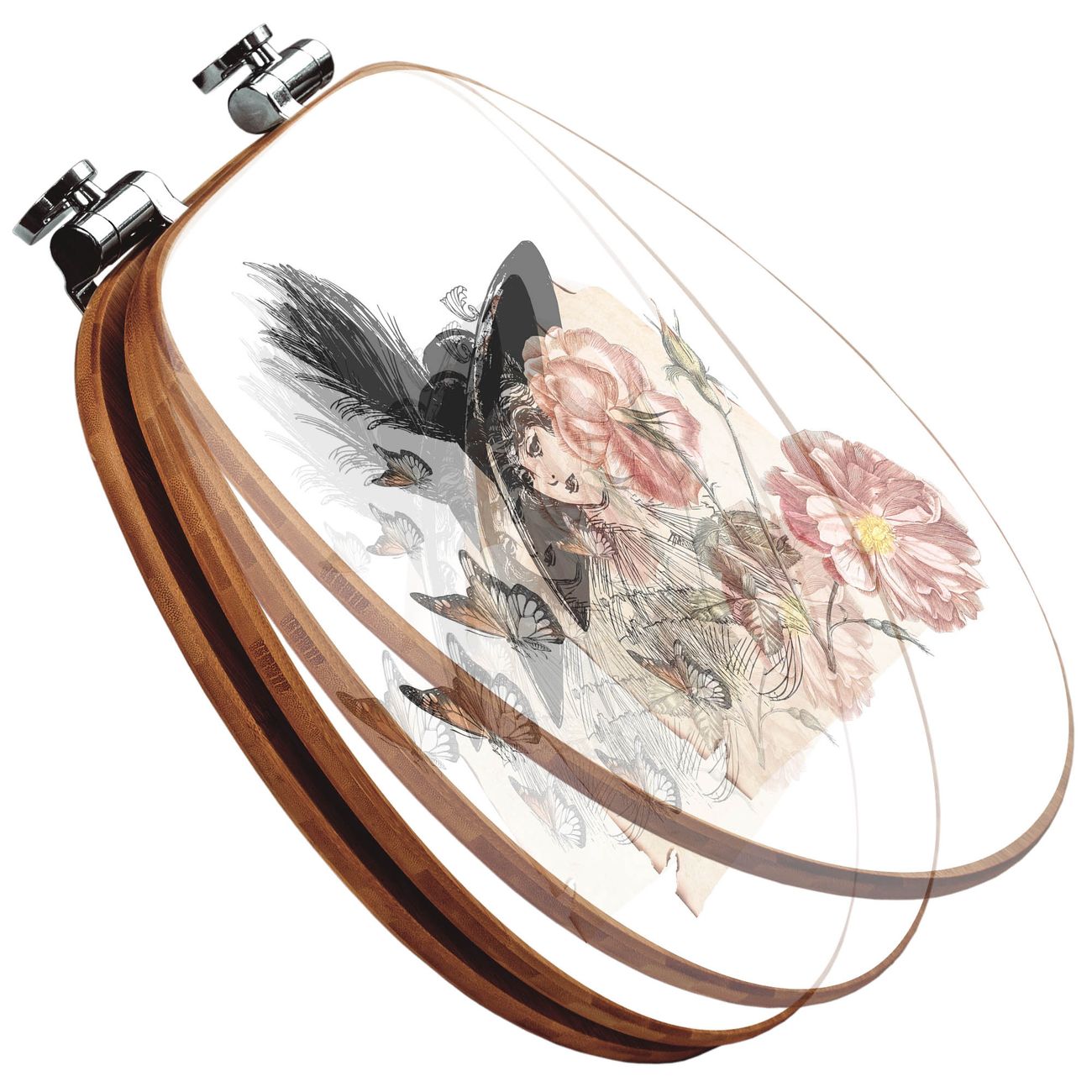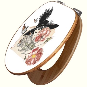 Design WC-Sitz Bambus Absenkautomatik Motiv Frau und Blühten Vintage