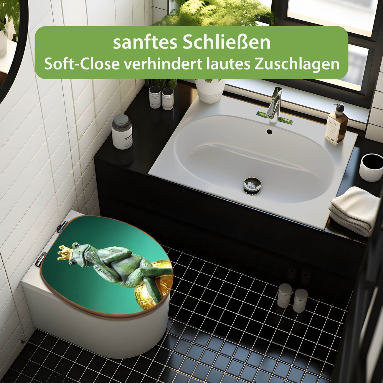 Design WC-Sitz Bambus Absenkautomatik Motiv Froschkönig