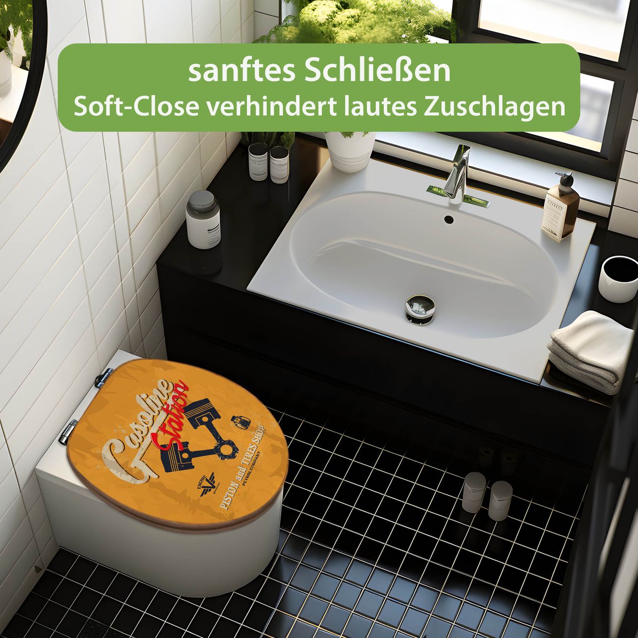 Design WC-Sitz Bambus Absenkautomatik Motiv Gasoline Station