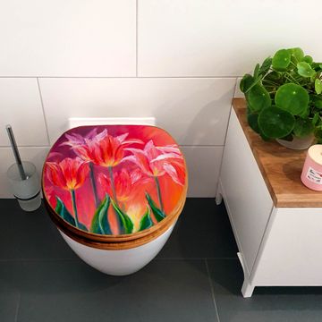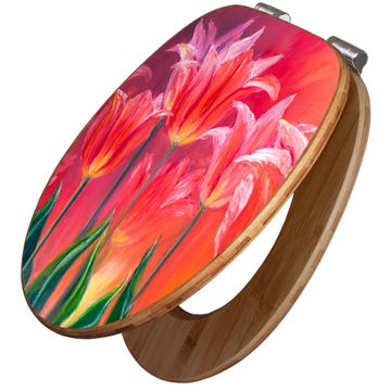 Design WC-Sitz Bambus Absenkautomatik Motiv Gemalte Tulpen