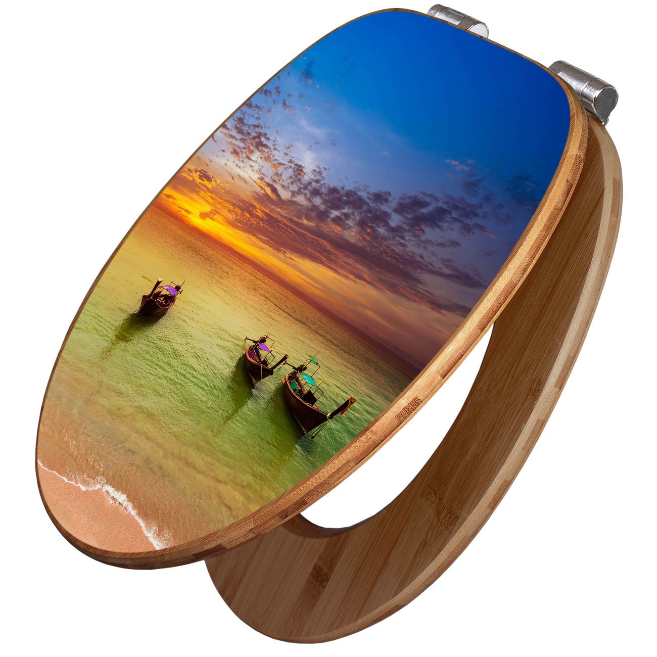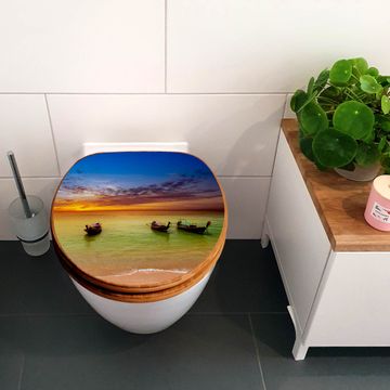 Mit dem banjado Toilettensitz in Bambus verbinden Sie Design und Funktionalität. Sie erhalten den WC-Sitz mit bewährter Holz Qualität und Universal Scharnieren. Das Motiv Motiv Golf Von Thailand besteht aus einer schutzlaminierten Motivfolie, die durch das Schutzlaminat zusätzlich vor Kratzern schützt. Durch diesen Motivdruck wird der WC-Sitz zu einem Blickfang in Ihrem Bad.